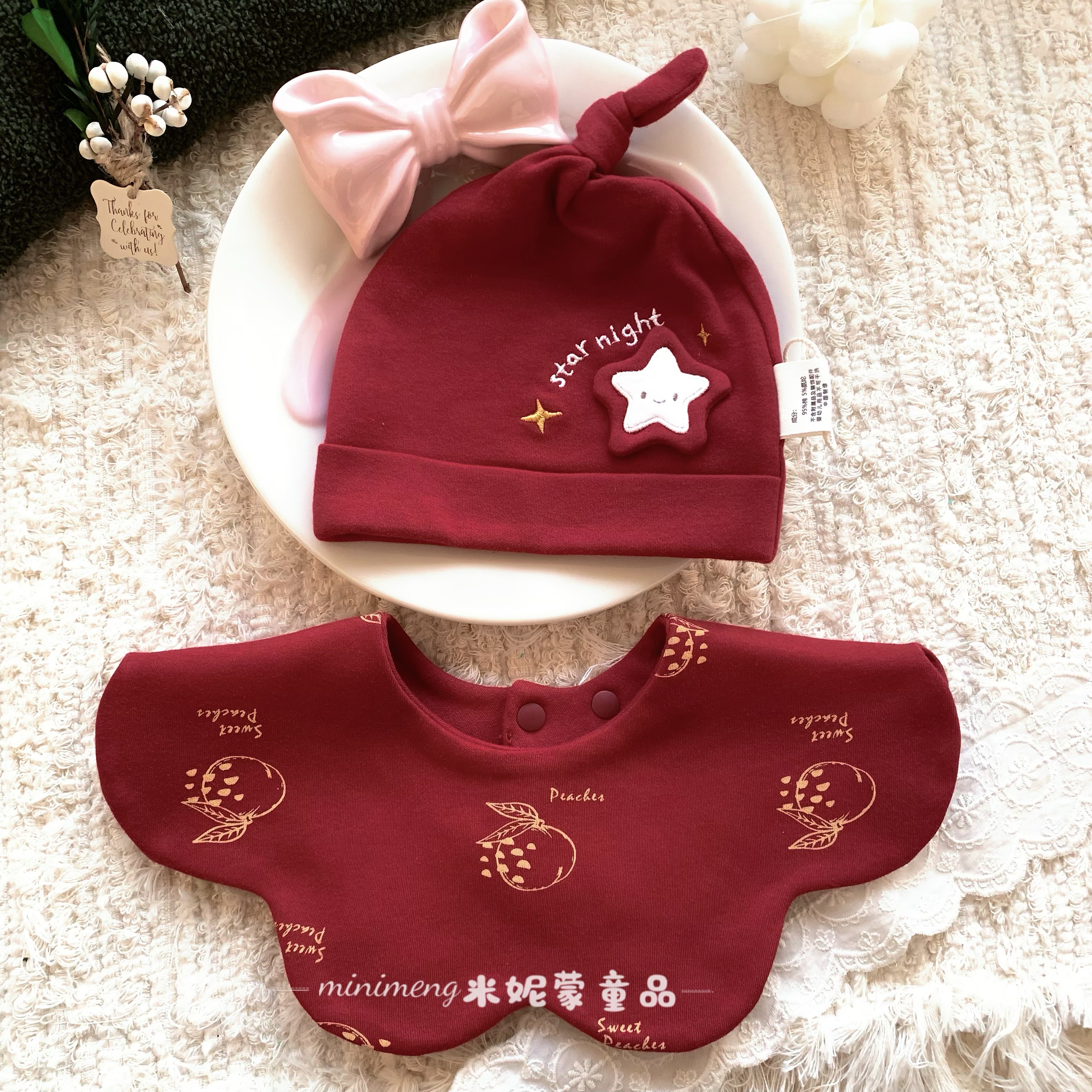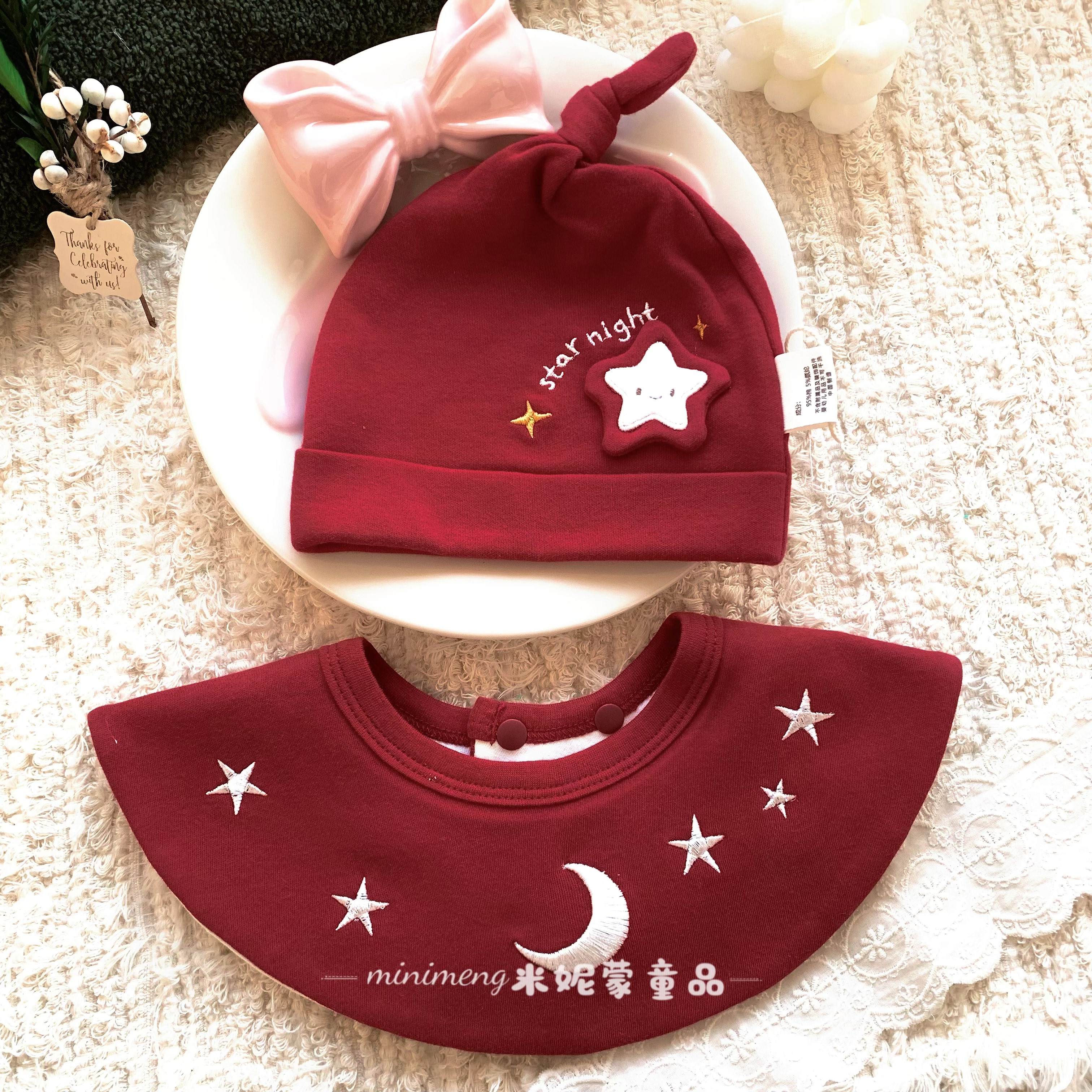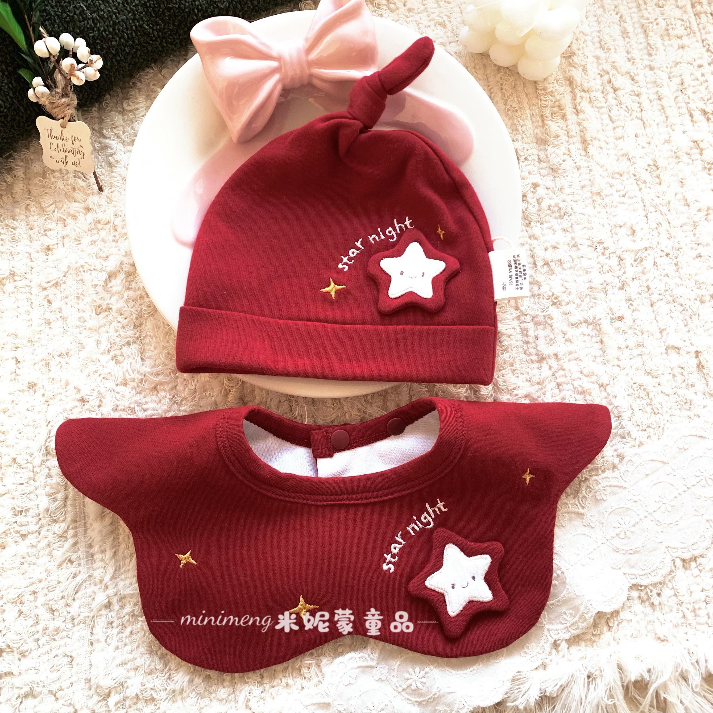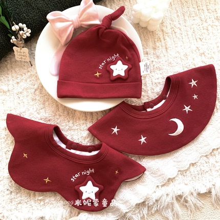 ins风婴幼儿360度宝宝围嘴婴儿防吐奶围兜新年款口水巾新生儿红色