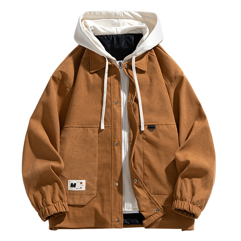复古潮牌假两件拼接连帽夹克男