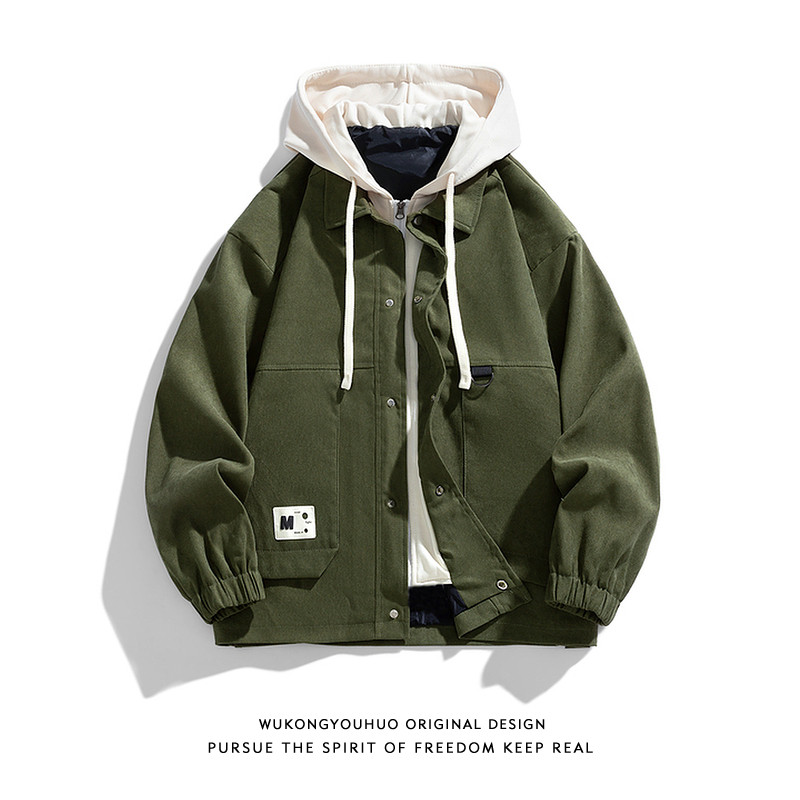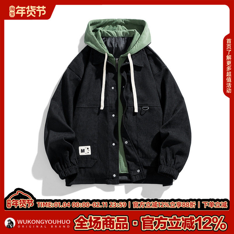 悟空有货复古潮牌假两件拼接连帽夹克男春季宽松潮流百搭休闲外套