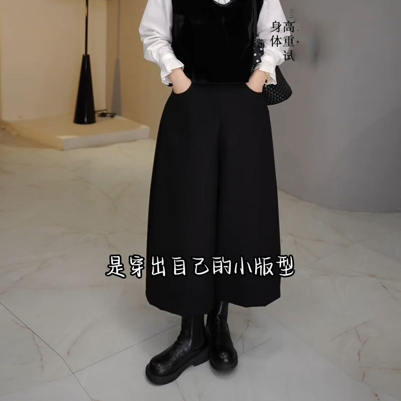 毛呢阔腿裤慵懒风休闲八九分裤