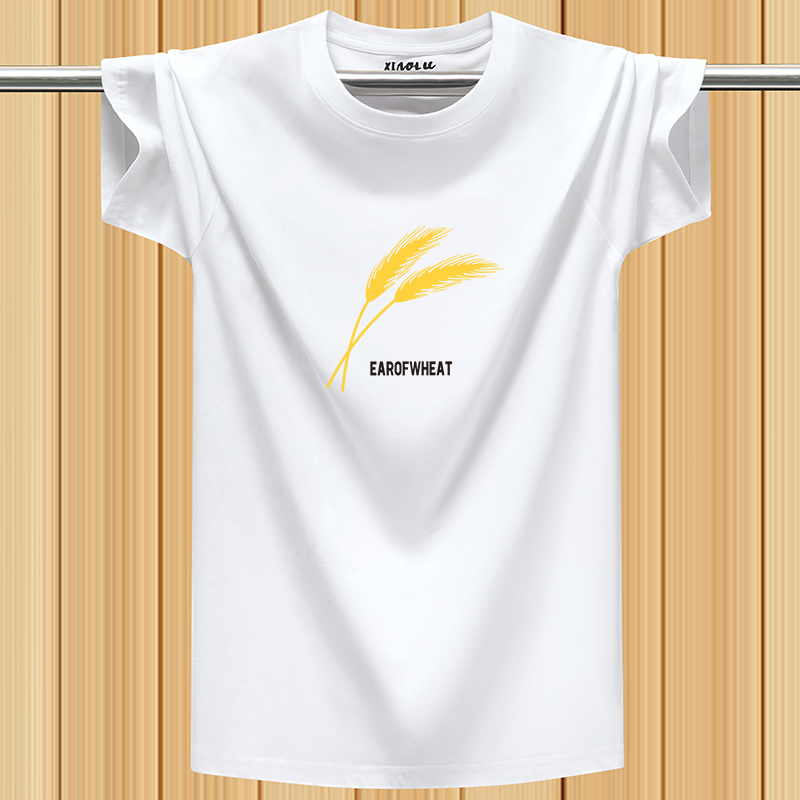 100%纯棉短袖t恤男夏季新款休闲汗衫圆领宽松加肥加大码印花体恤