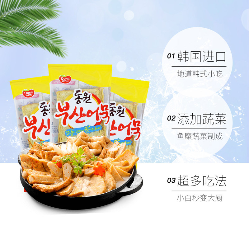 正宗韩国进口东远鱼饼海鲜饼韩式火锅关东煮鱼糕串竹轮卷炒年糕
