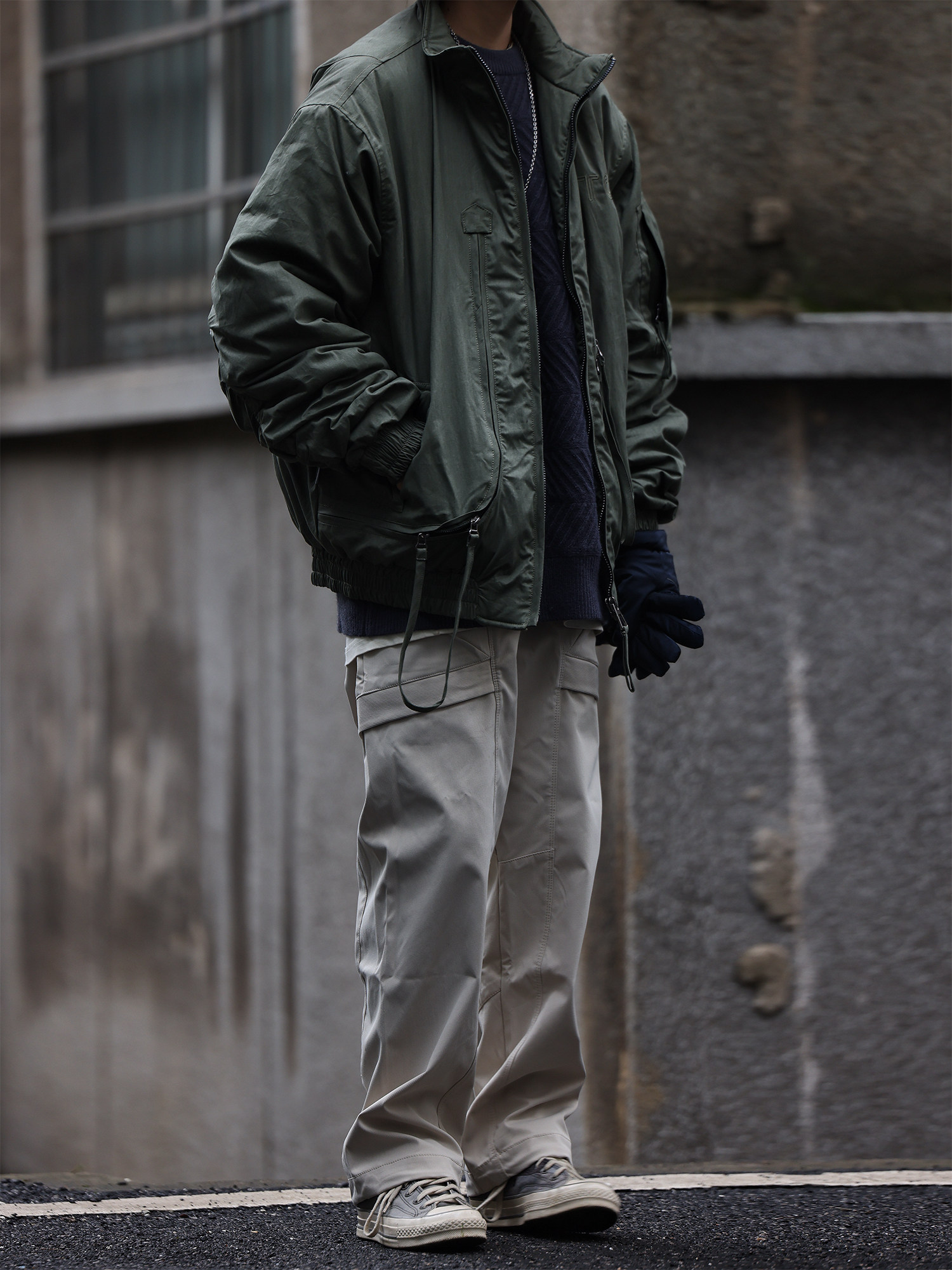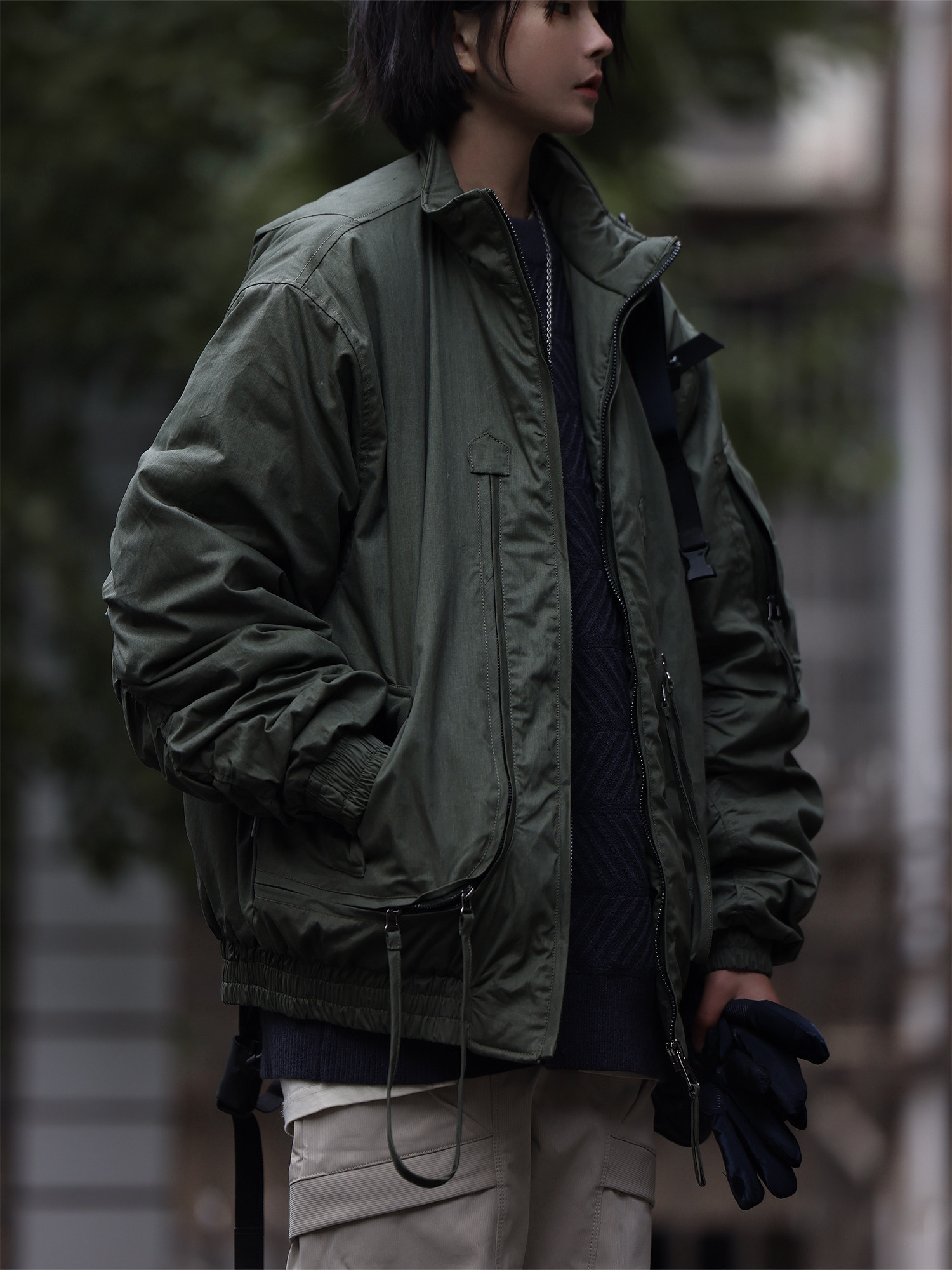Nobodyknows冬季户外做旧质感立领飞行夹克棉服情侣宽松工装棉衣