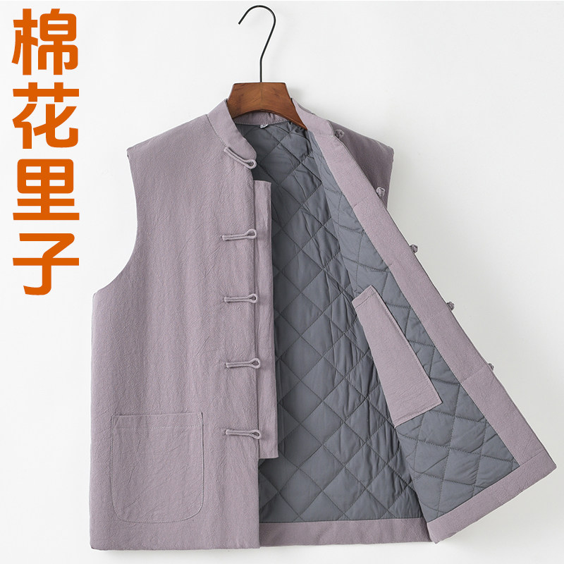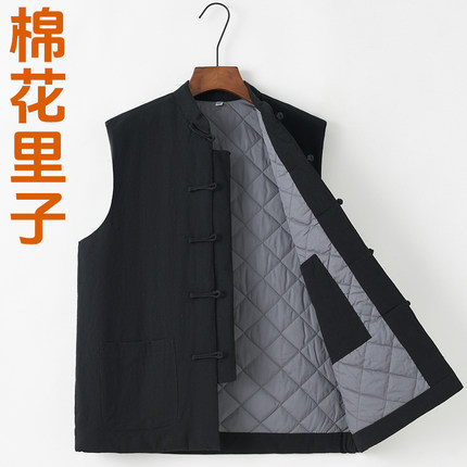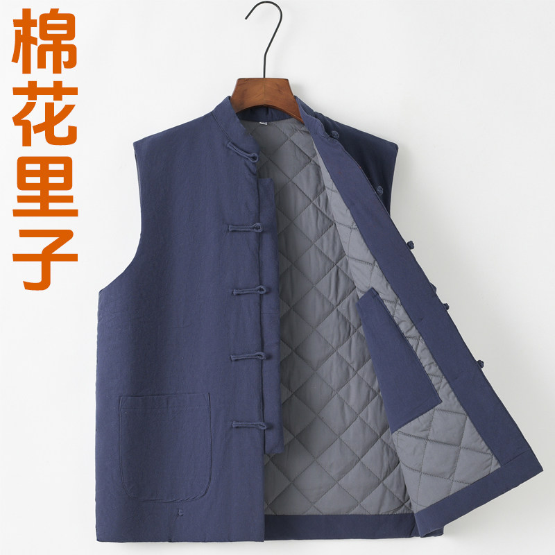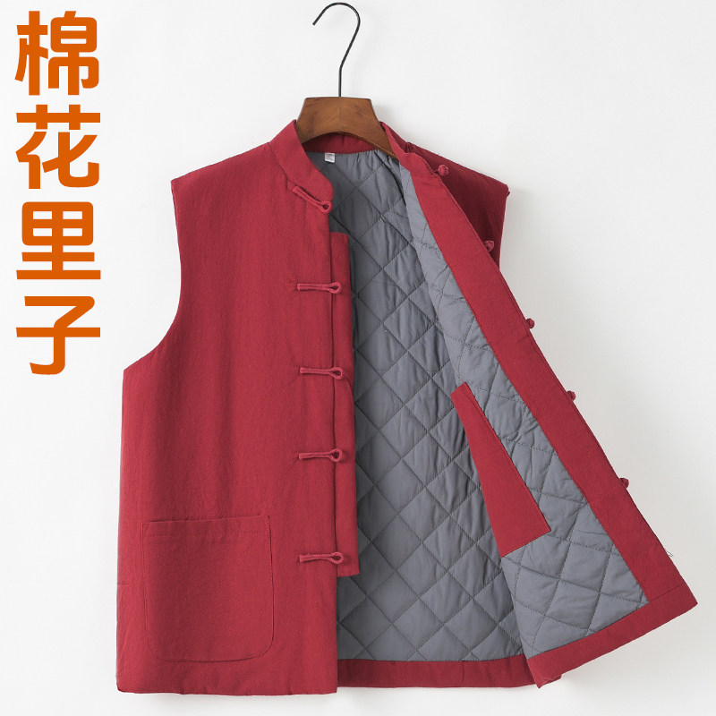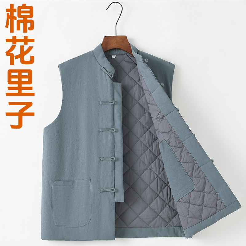中国风冬季中式棉坎肩唐装男中老年夹棉马甲背心盘扣复古棉衣棉服