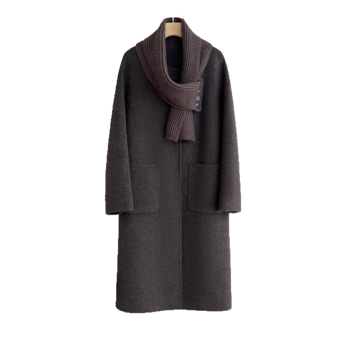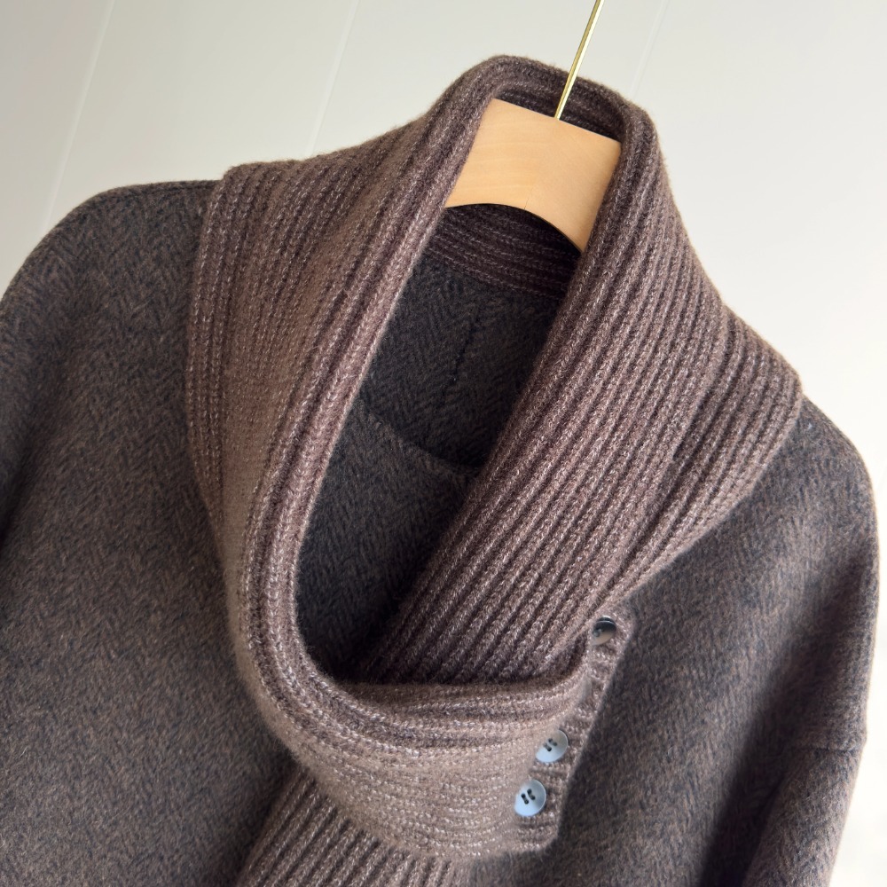 恩迪围巾领高支澳毛羊毛大衣2025年冬季气质中长款咖色呢子外套