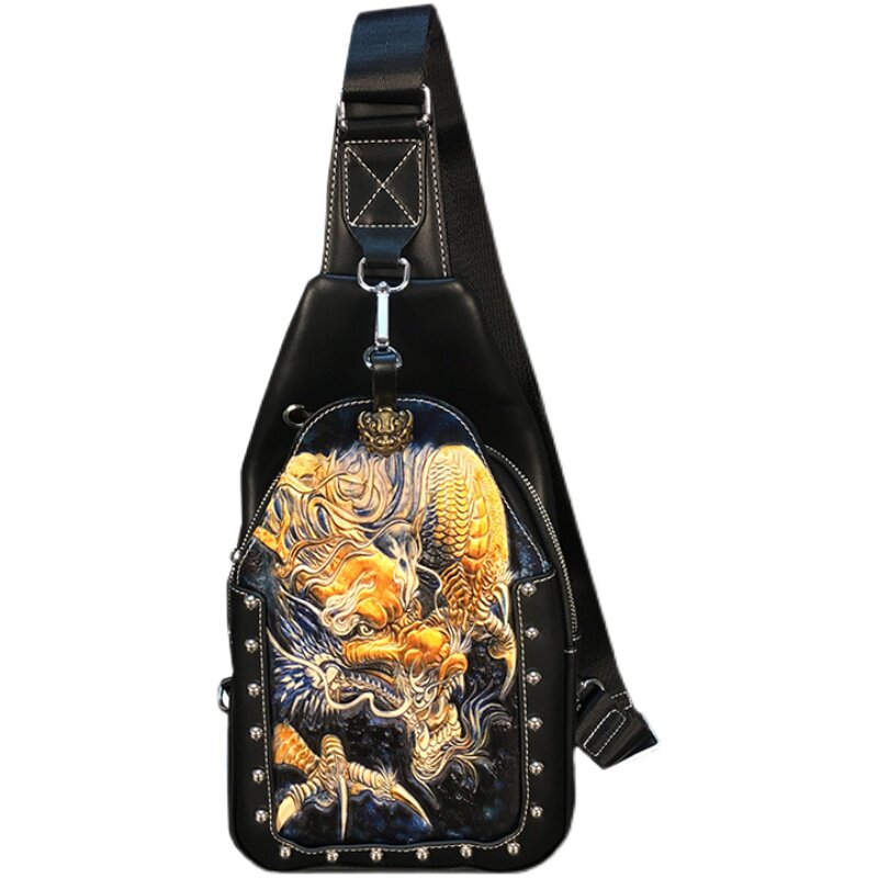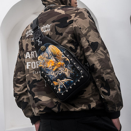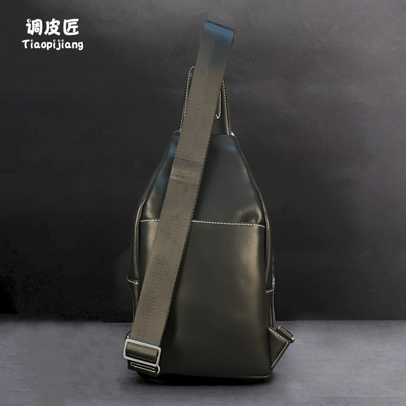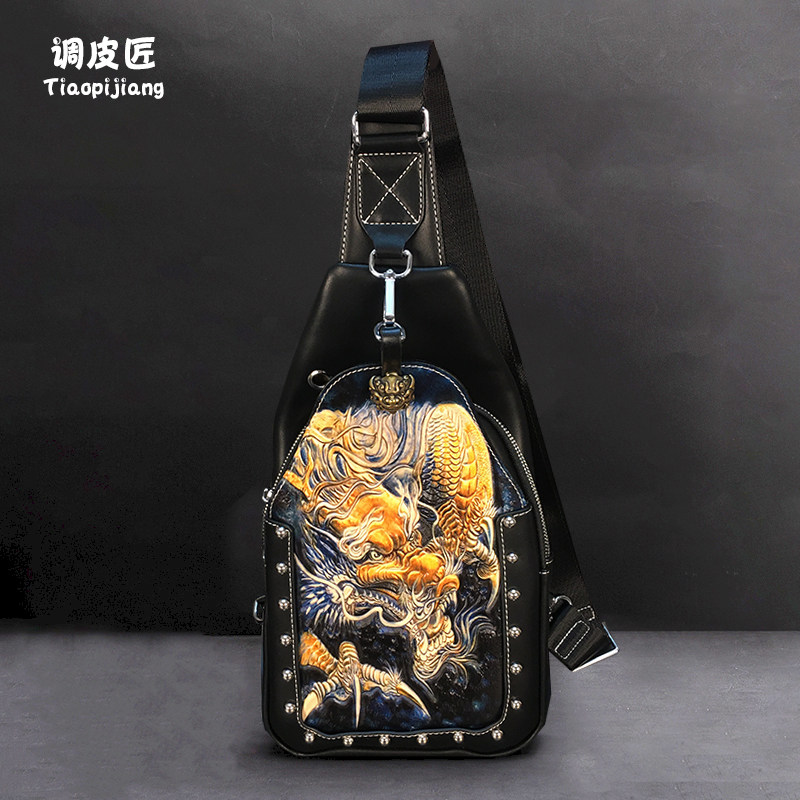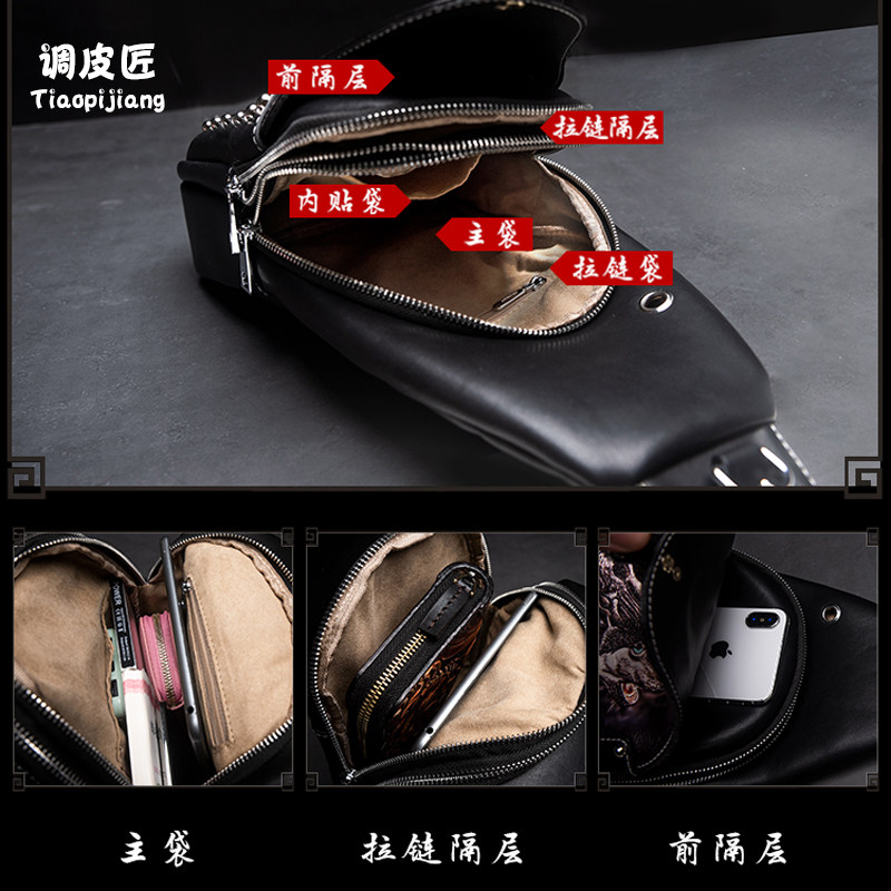调皮匠胸包男斜肩包潮牌2025新款挎包真皮休闲大容量原创皮雕背包