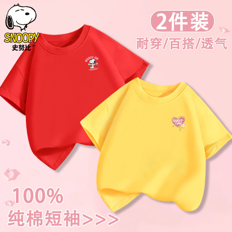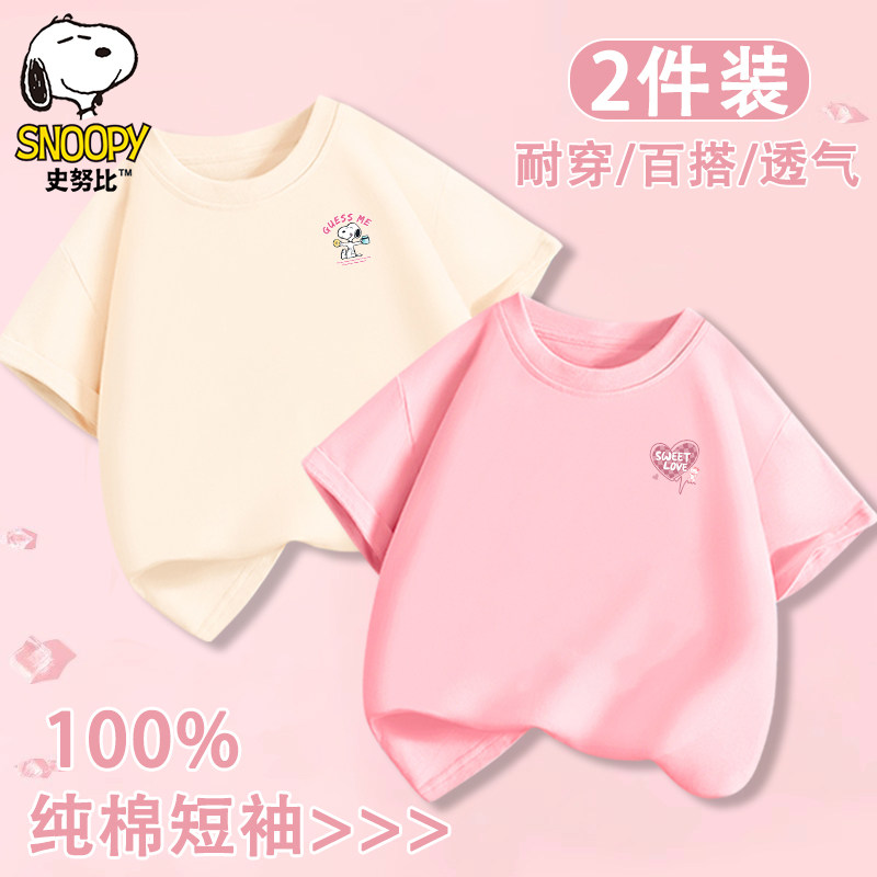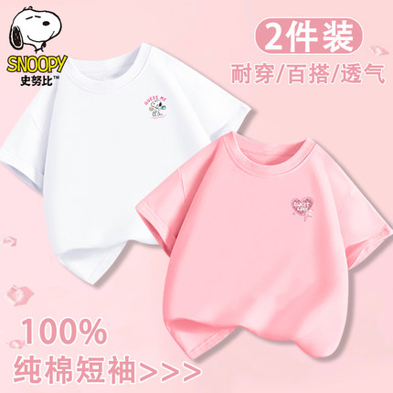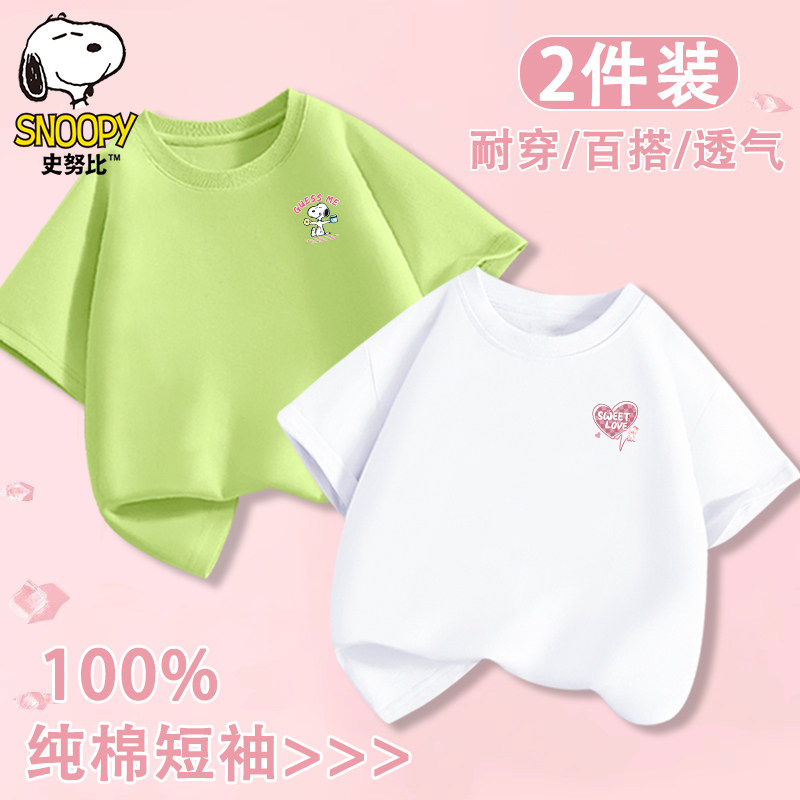 史努比女童100%纯棉短袖儿童时髦洋气韩版糖果色T恤甜美公主风潮