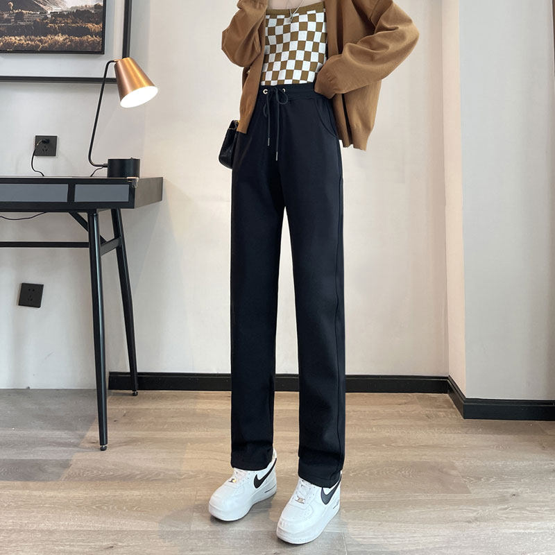 春秋棉质修身显瘦小脚加长版高个子女运动卫裤窄版直筒烟管休闲裤