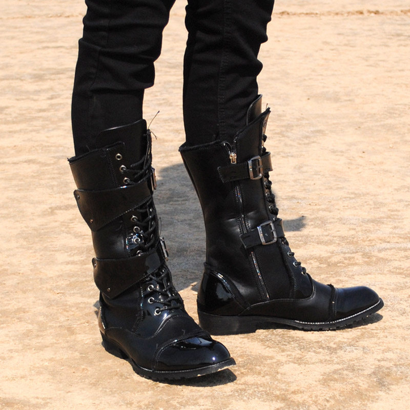 马丁靴男韩版秋冬时尚潮靴长筒皮靴高筒男靴系带男士靴子牛仔马靴