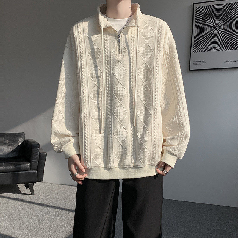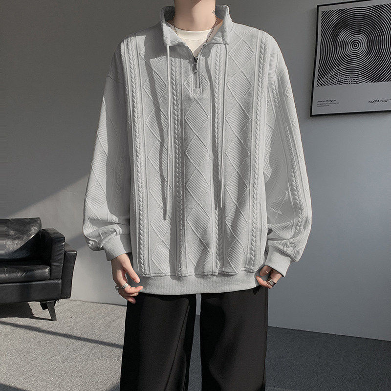 卫衣男春季新款港风宽松提花大码长袖T套头上衣-特