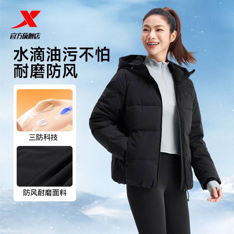 特步羽绒服女士2025年冬季新款运动上衣保暖风衣外套975428190034