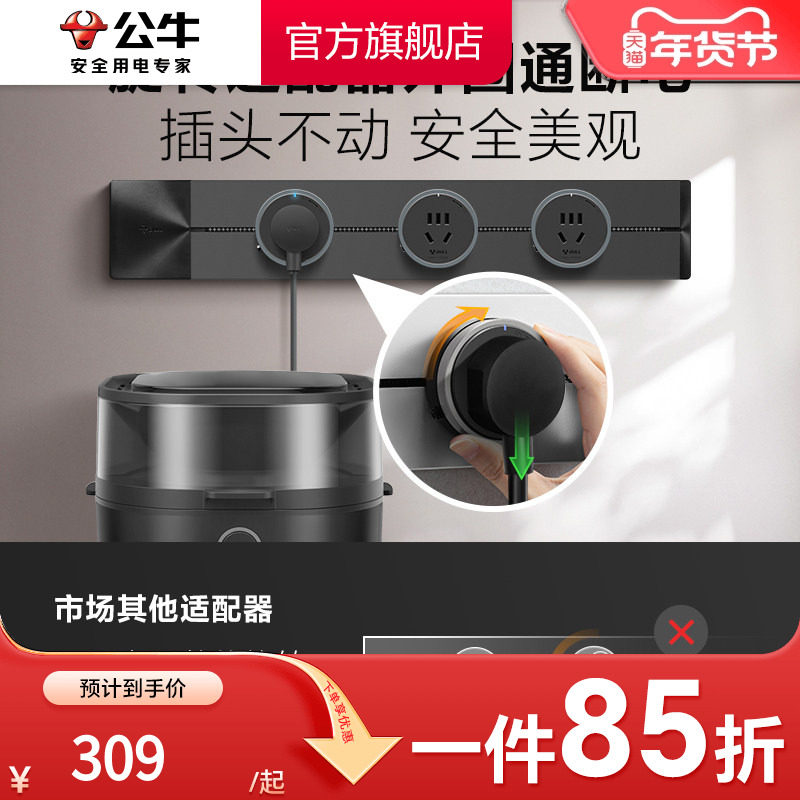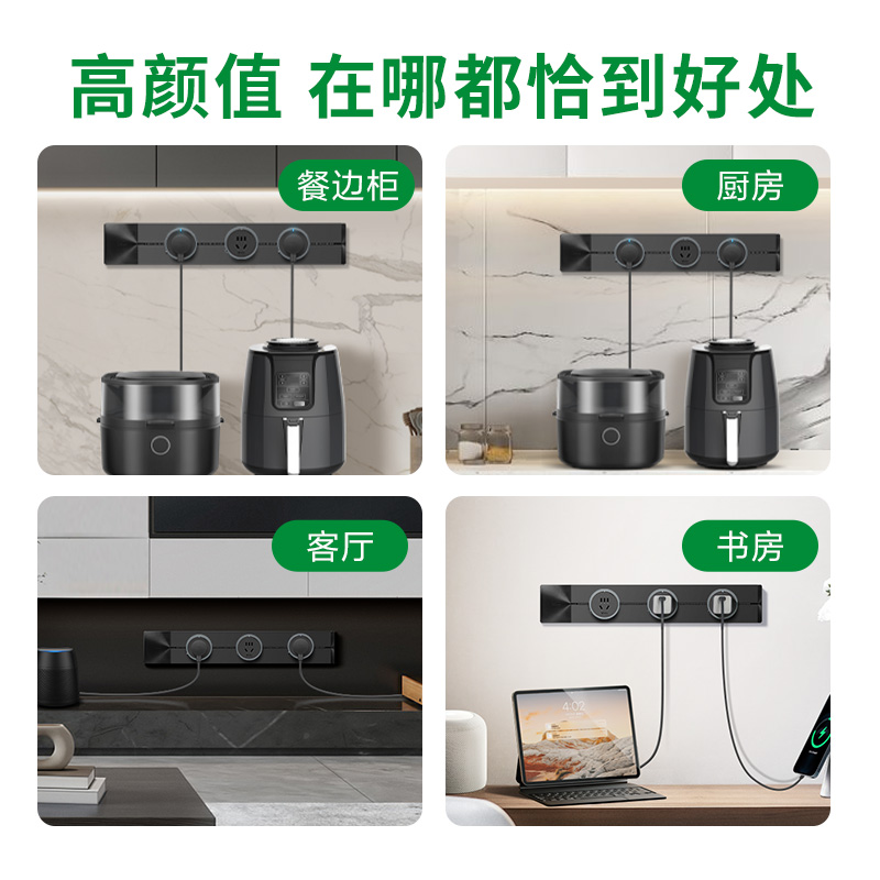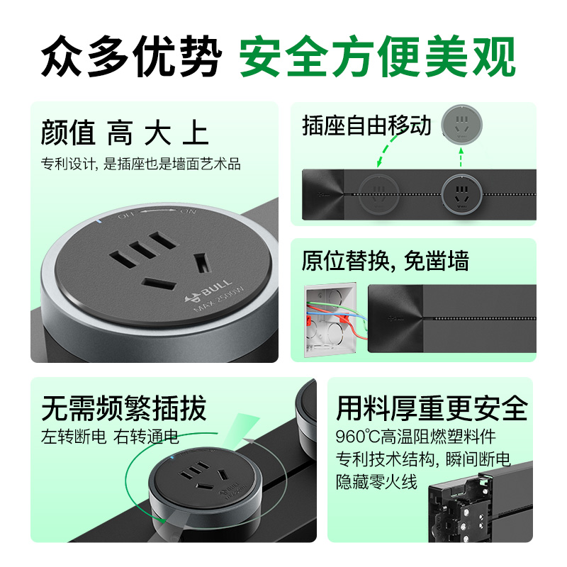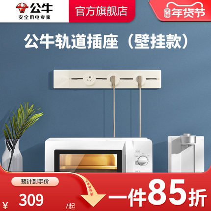 公牛可移动电力轨道插座导轨厨房客厅卧室无线排插接线板家用
