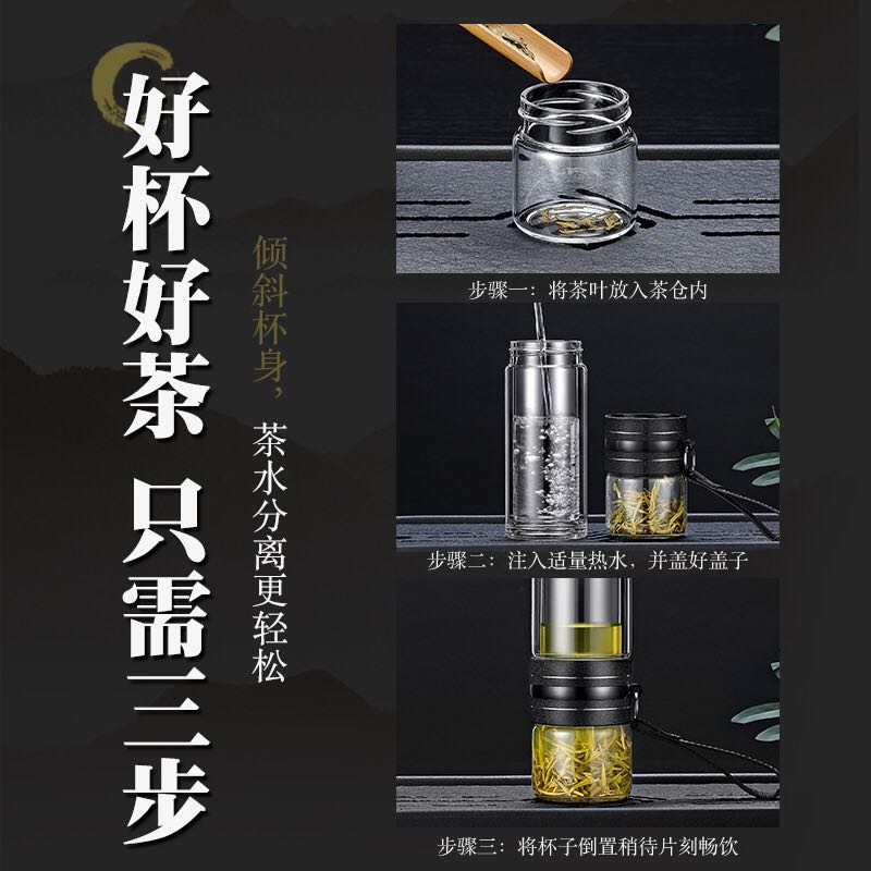 茶水分离杯盖茶仓配件定制杯盖通用双层玻璃杯身过滤网泡茶保温杯