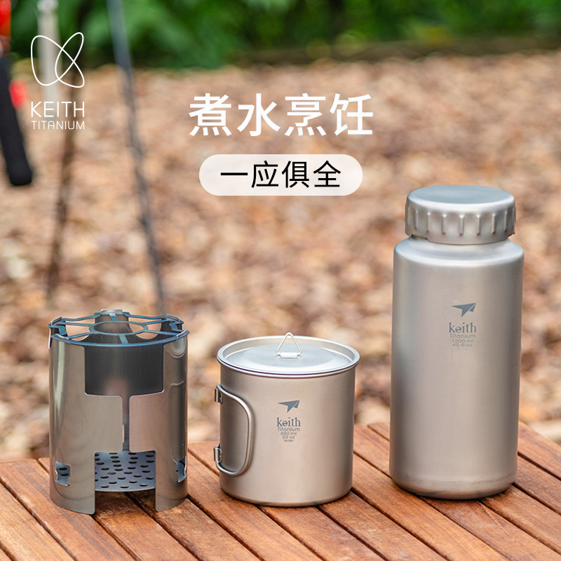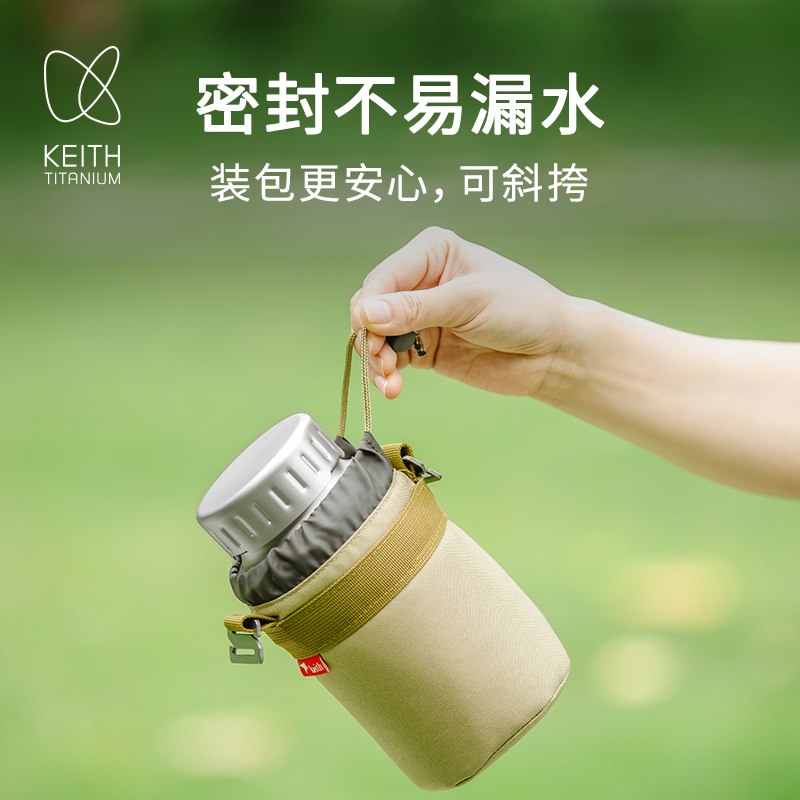 KEITH铠斯纯钛宽口壶户外运动水壶轻质便携式大容量水杯子送壶套