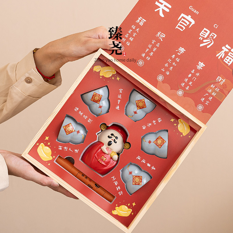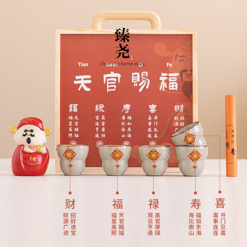 臻尧伴手礼汝窑茶具福禄寿喜财