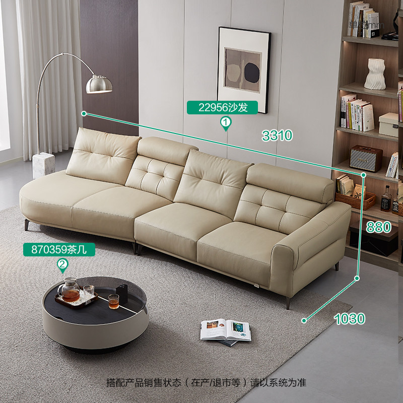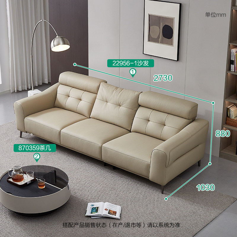 全友家居门店同款 22956 头层真黄牛皮转角L异直排一字型皮艺沙发