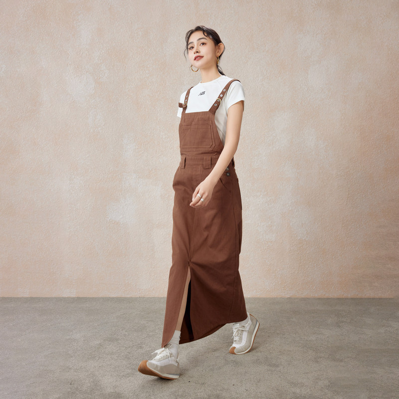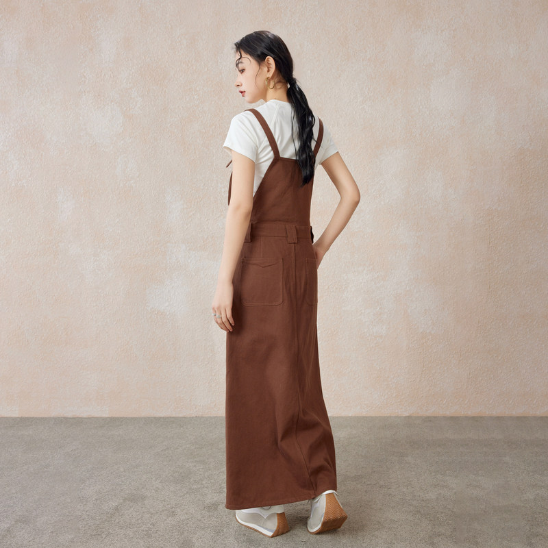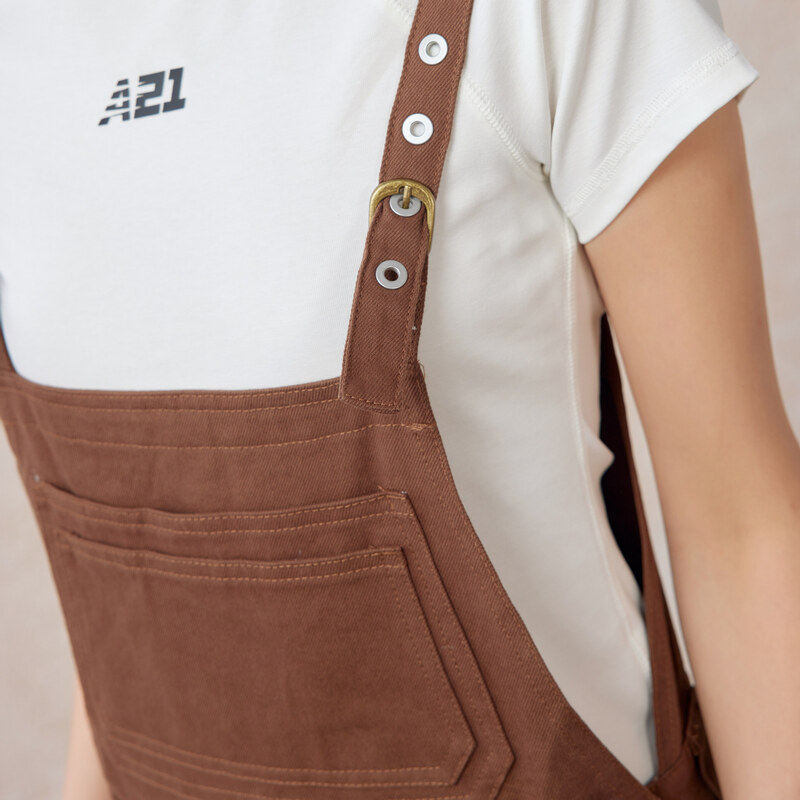 A21女装方领无袖连身背带裤子梭织连衣裙春夏季外搭潮牌纯色裙子