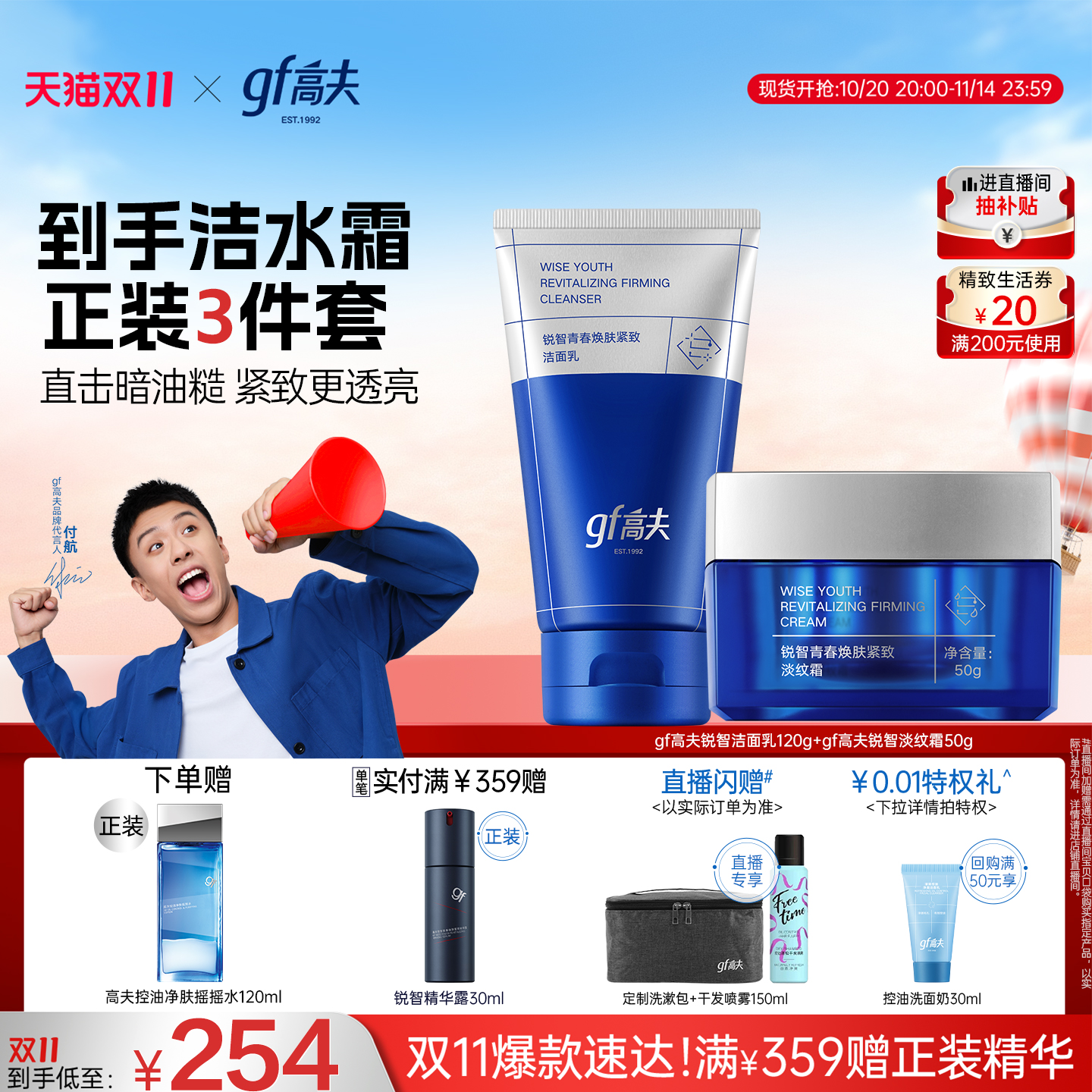 【重磅新品】gf高夫男士锐智青春焕肤淡纹霜滋润肤擦脸护肤品秋冬