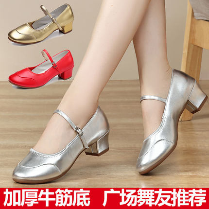 杨丽萍广场舞鞋女成人舞蹈鞋软底红色跳舞鞋中跟交谊舞金色演出鞋