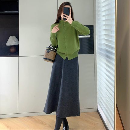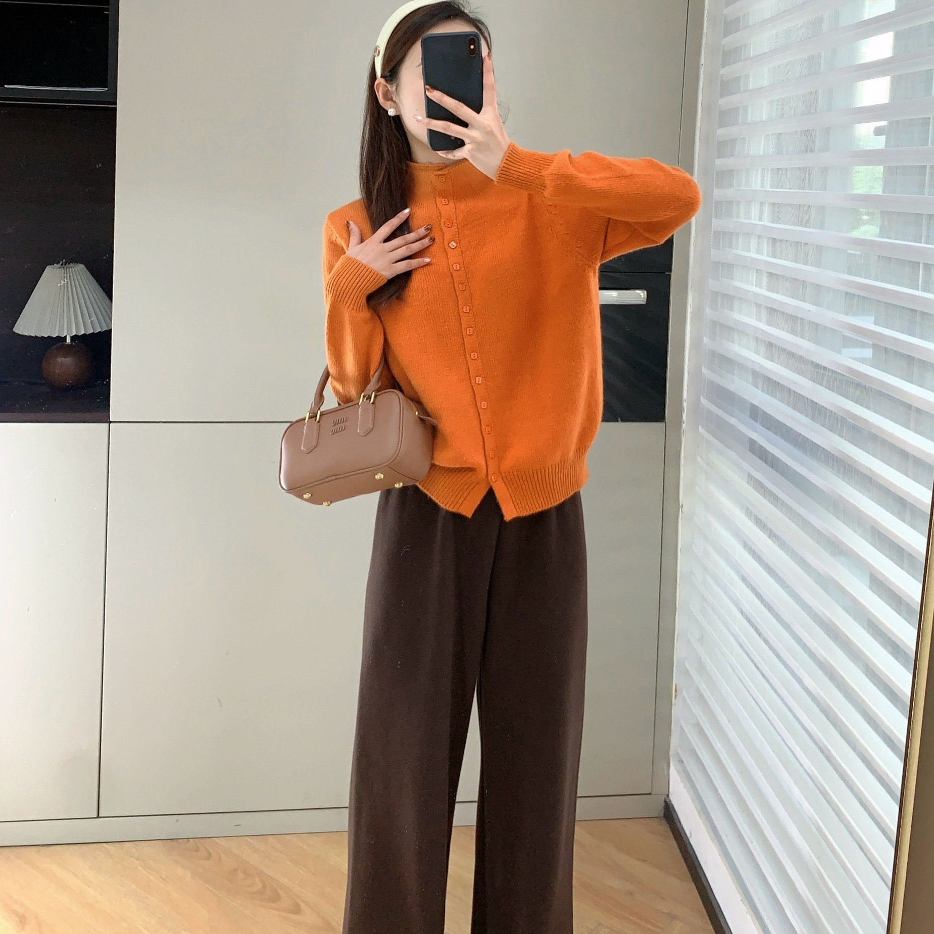 韩单!方扣针织上衣~24支羊毛兔毛立领单排扣开衫毛衣女