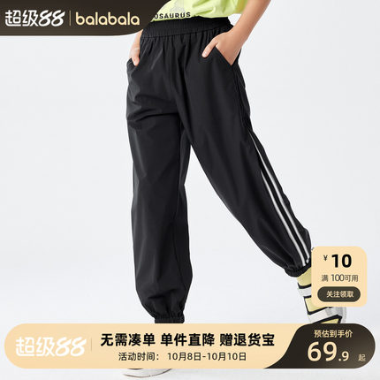 巴拉巴拉童装男童休闲裤儿童裤子夏装中大童女童运动长裤撞色潮酷