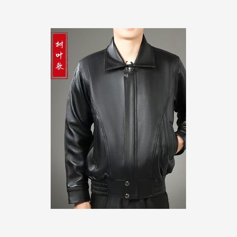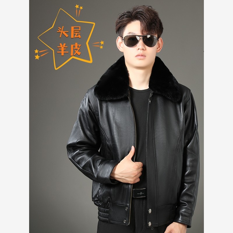 新款头层羊皮皮衣男士休闲秋冬季真皮加棉皮外套中老年翻领皮夹克