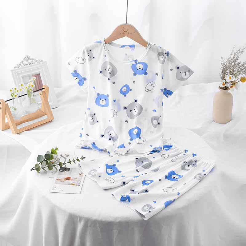 夏天儿童睡衣短袖纯棉男童女中大童宝宝空调服卡通薄款家居服套装