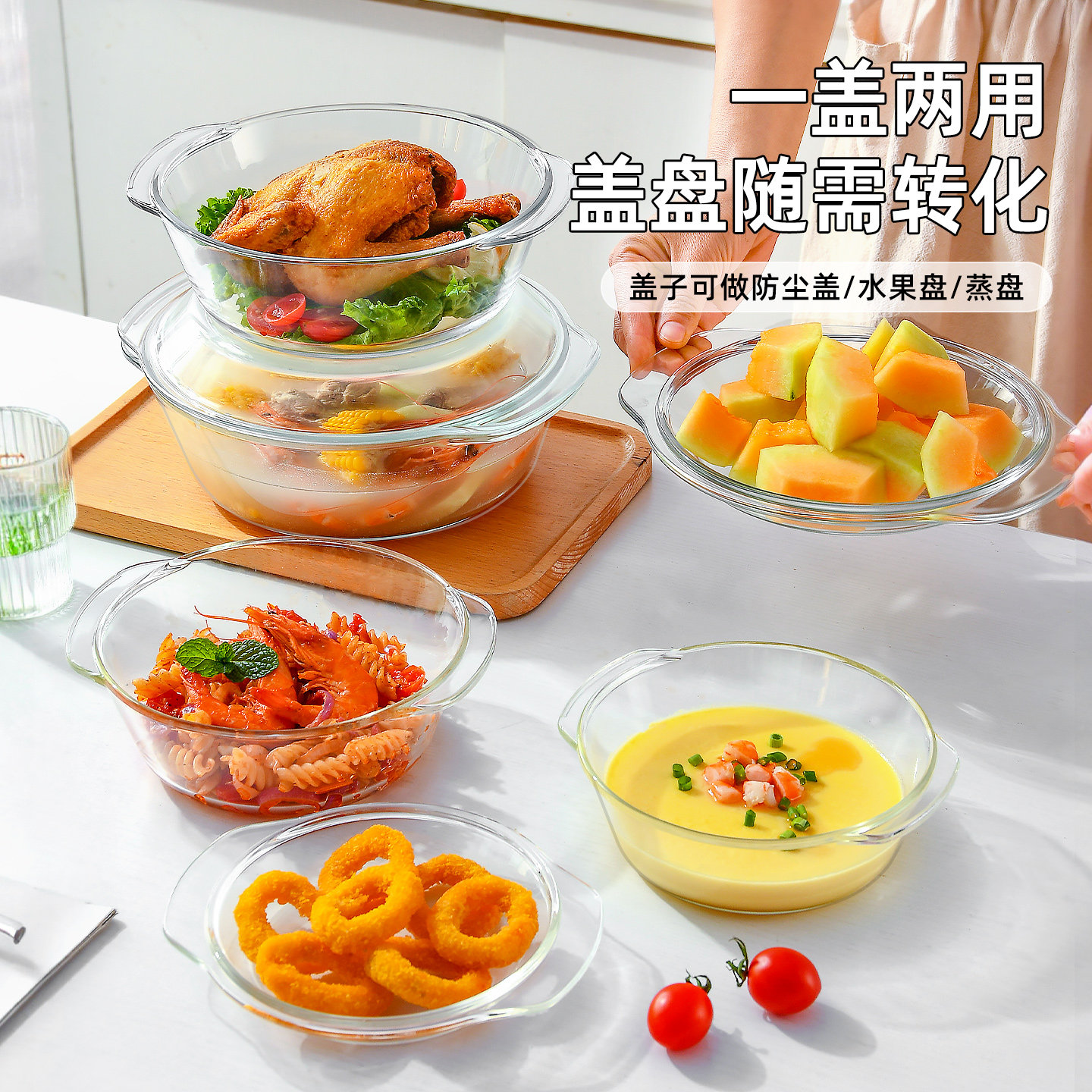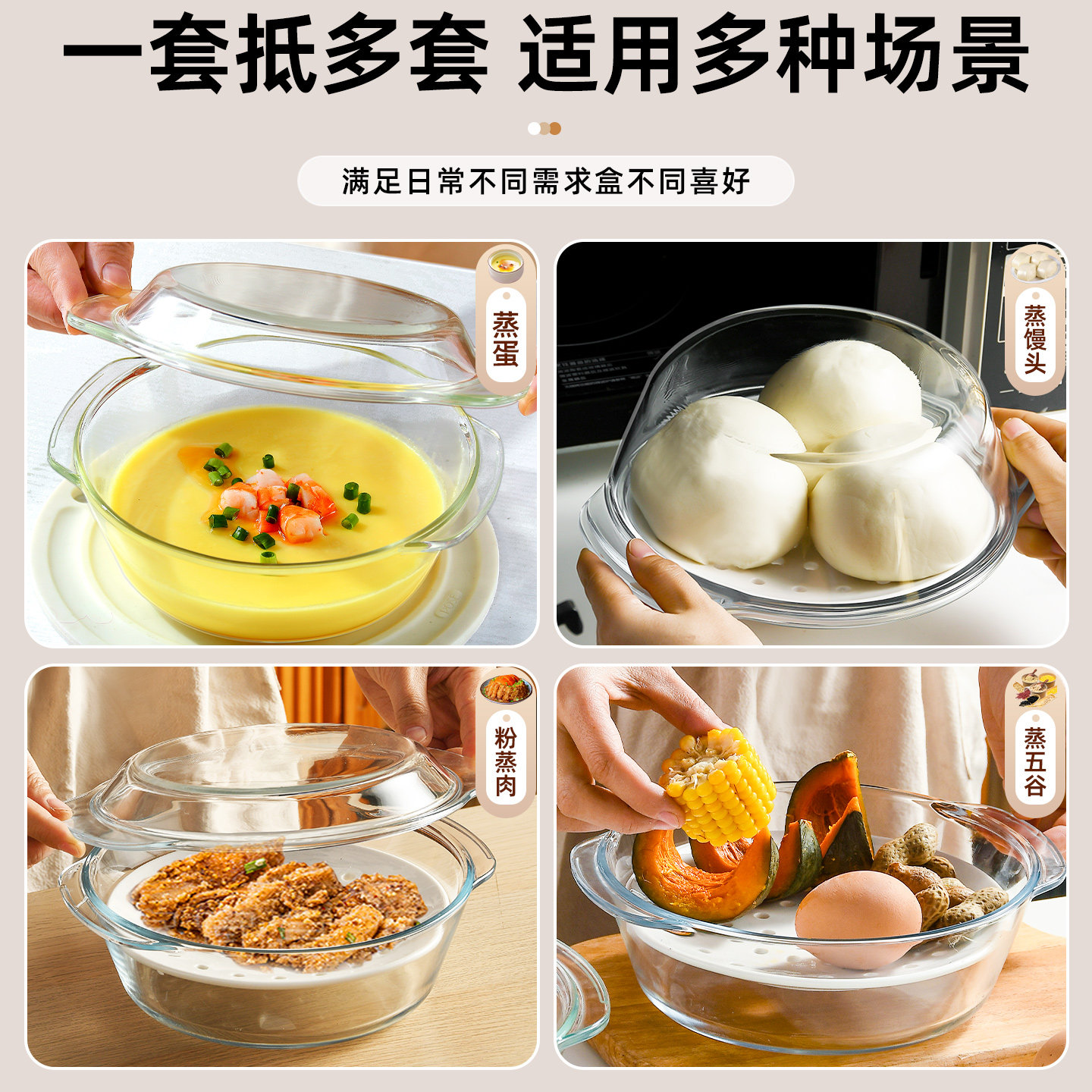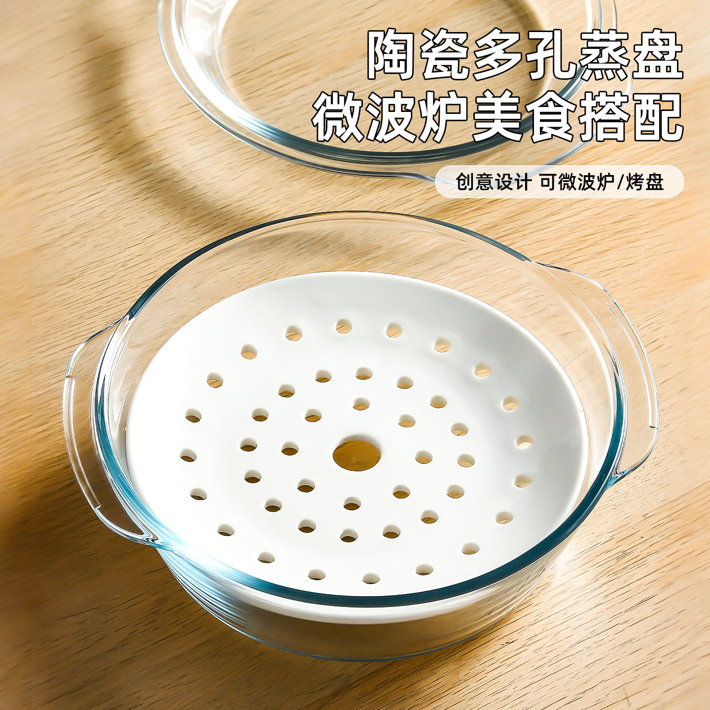 微波炉专用碗加热耐高温器皿带盖玻璃蒸笼蒸碗陶瓷蒸盘泡面蒸蛋碗