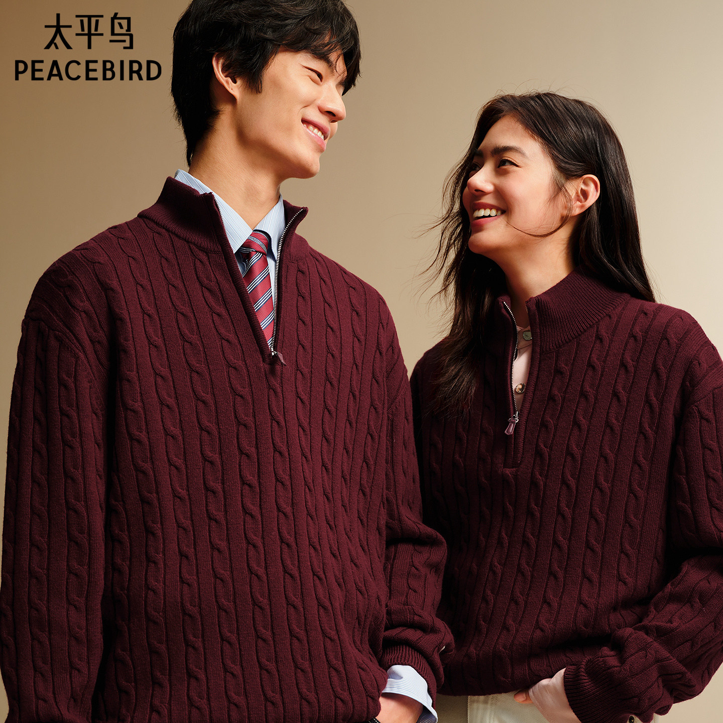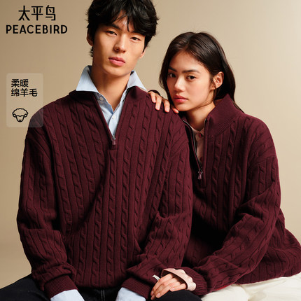 太平鸟男装 休闲男士绵羊毛开衫立领新年红色毛衫 当季热卖毛衣