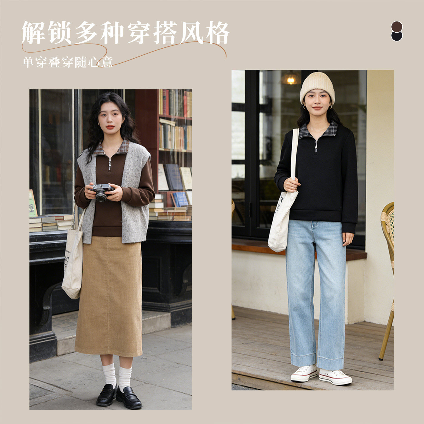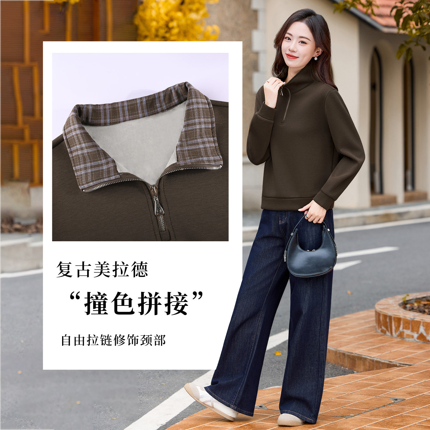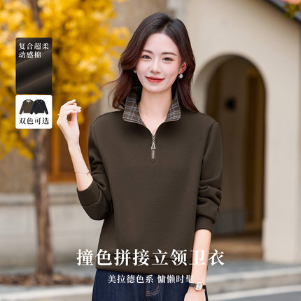 半拉链撞色拼接立领卫衣2025年冬季加绒加厚保暖百搭妈妈女士小衫