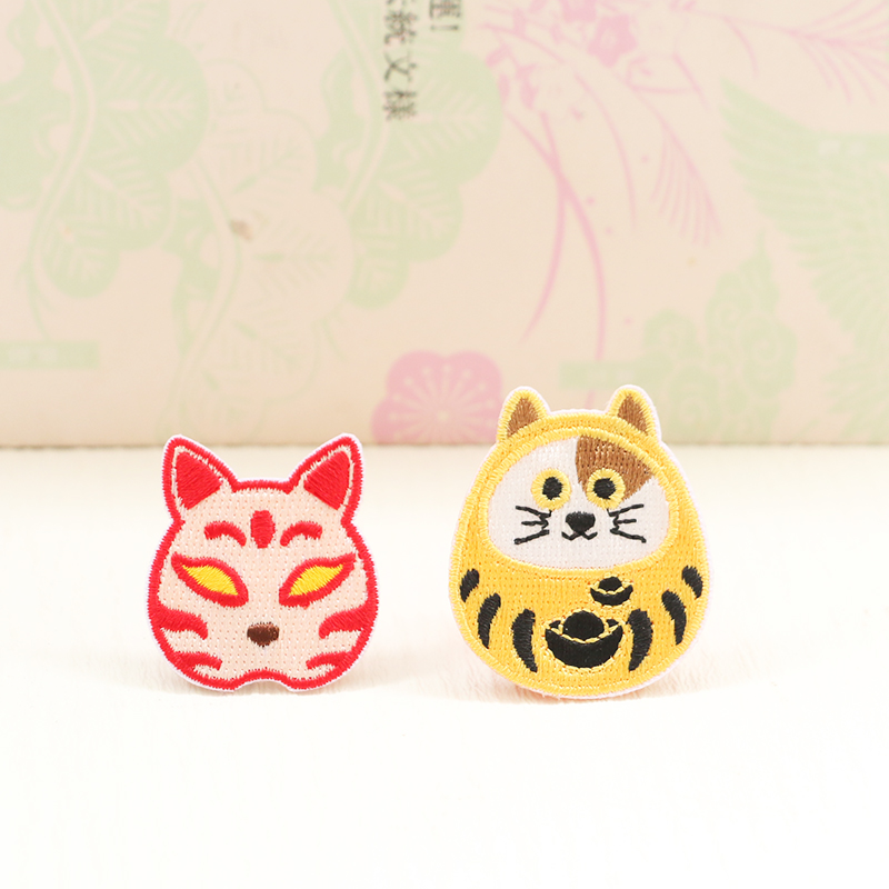 粘贴款日式和风刺绣贴达摩包包手账装饰贴布衣服破洞补丁手机贴纸