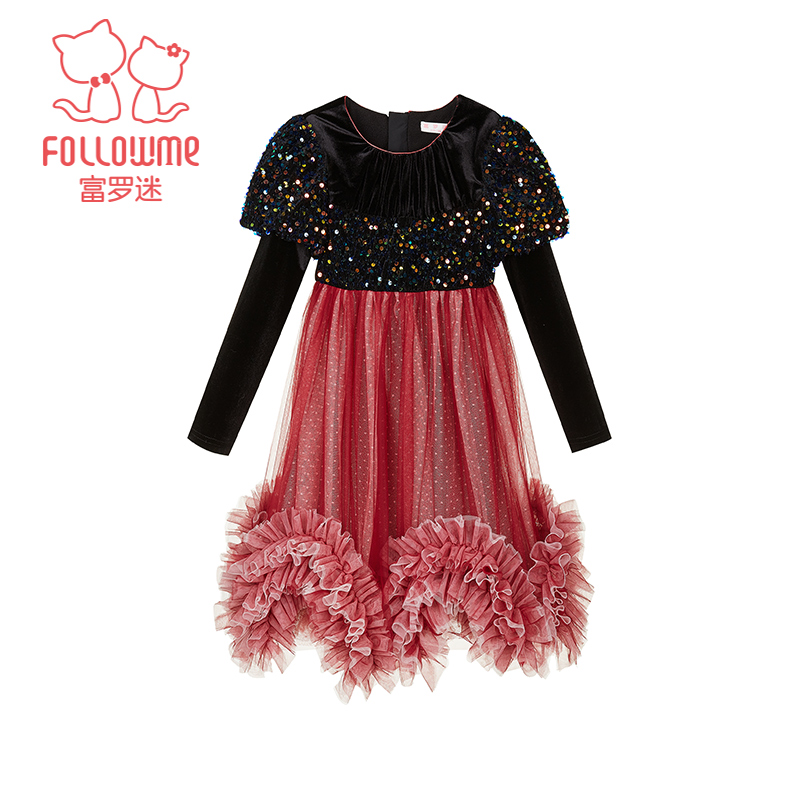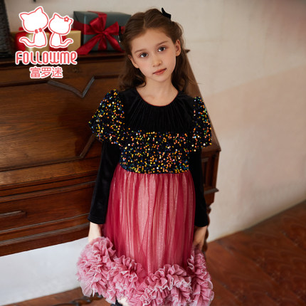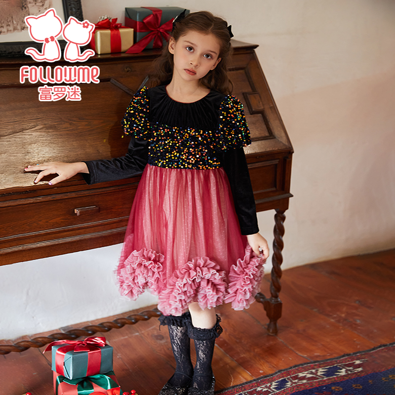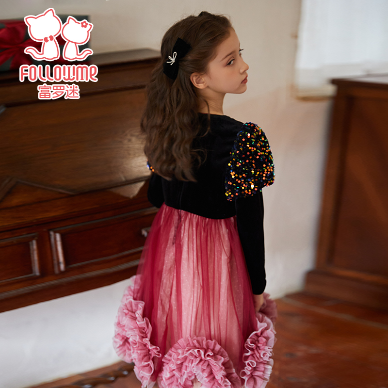 富罗迷女童连衣裙儿童装2024新款冬季洋气小女孩公主裙周岁礼服裙