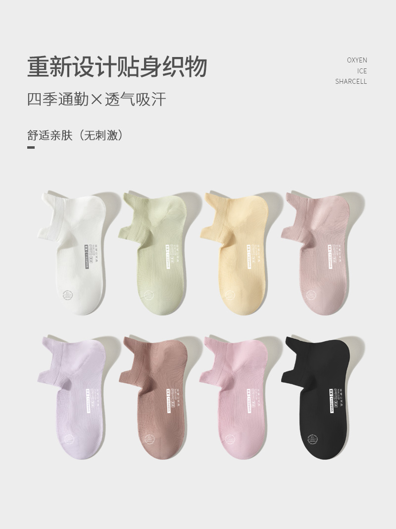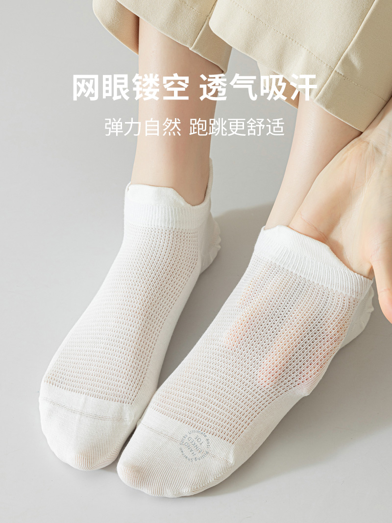 袜子女夏季薄款纯棉短袜不掉跟防臭吸汗抗菌夏天提耳船袜网眼透气