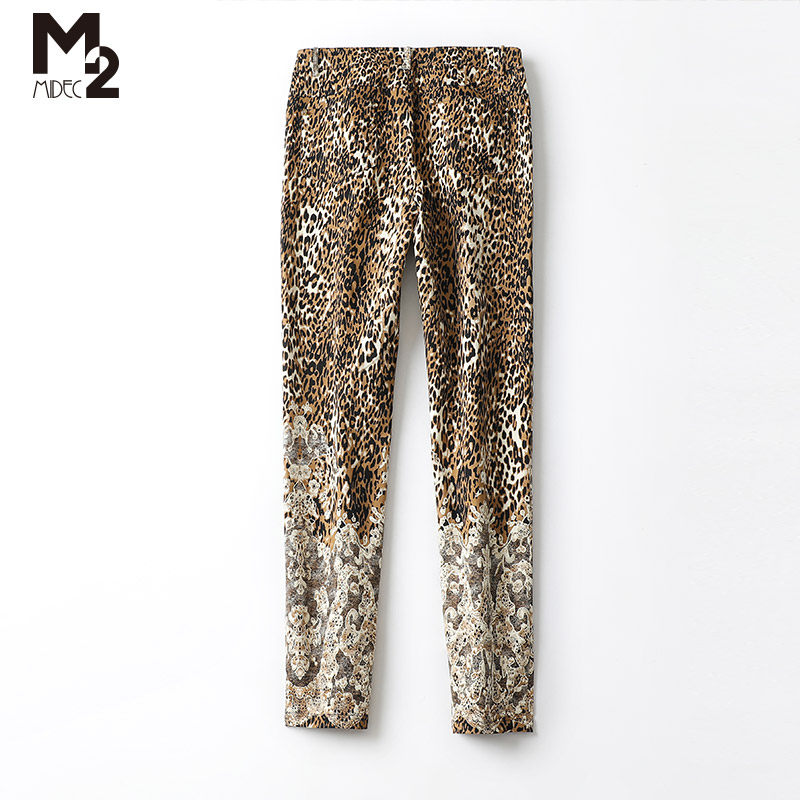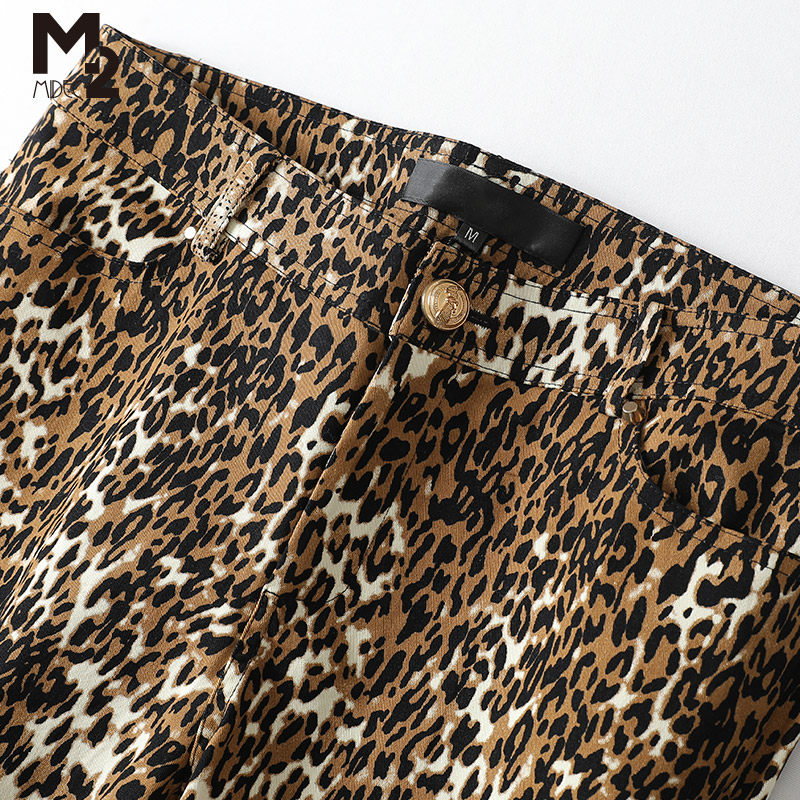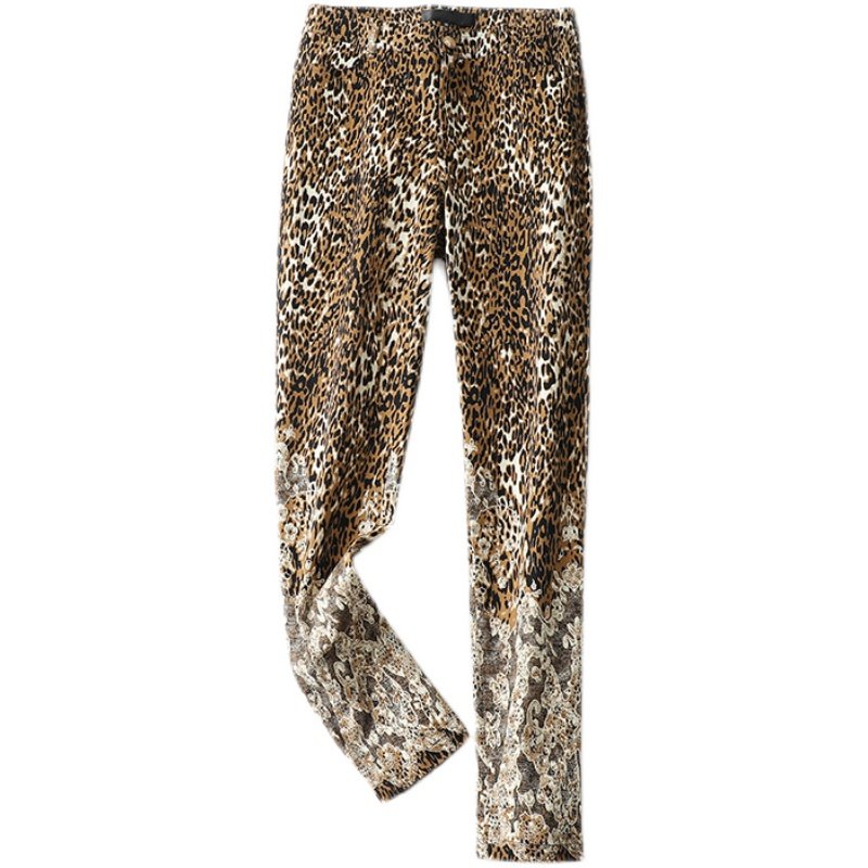 M2女装品牌折扣休闲裤子女春秋豹纹时尚潮流纯棉弹力大码铅笔裤