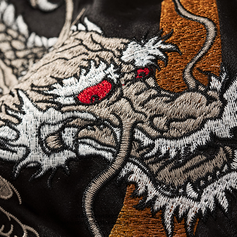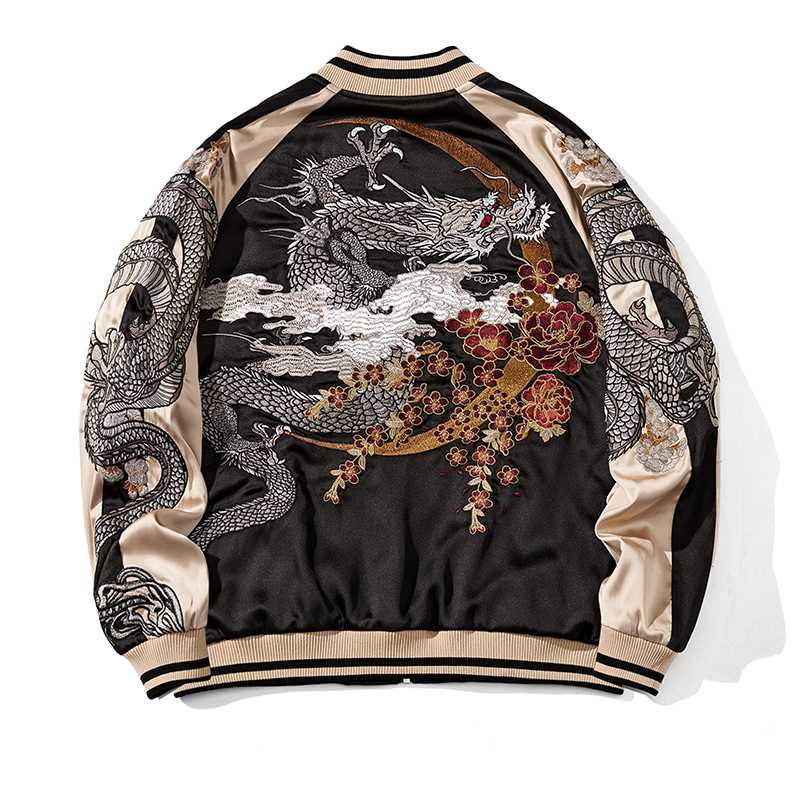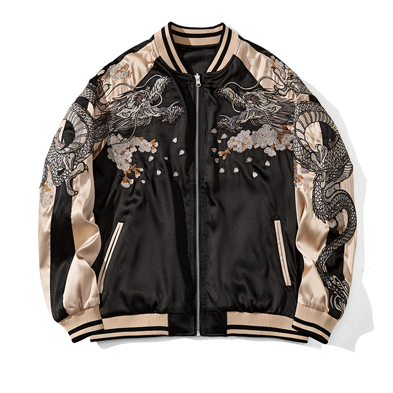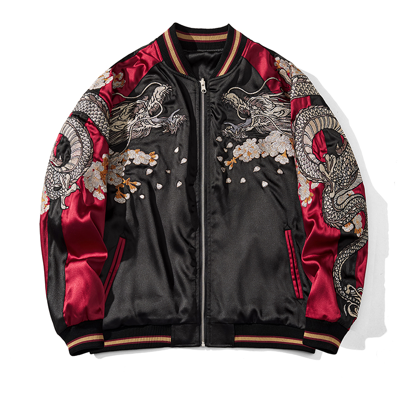 千往国潮重工横须贺龙刺绣夹克棒球服双面穿外套男女国风龙年红色