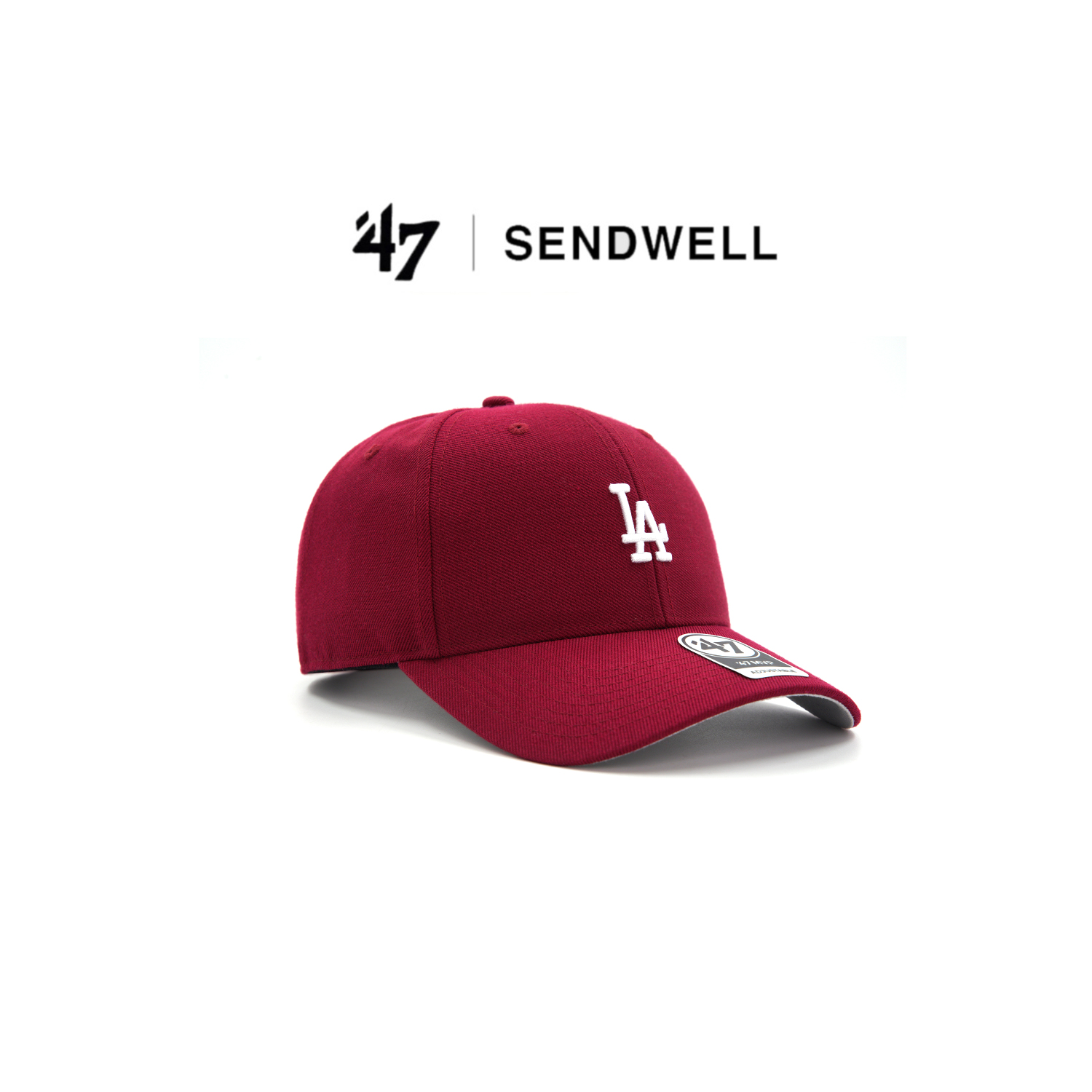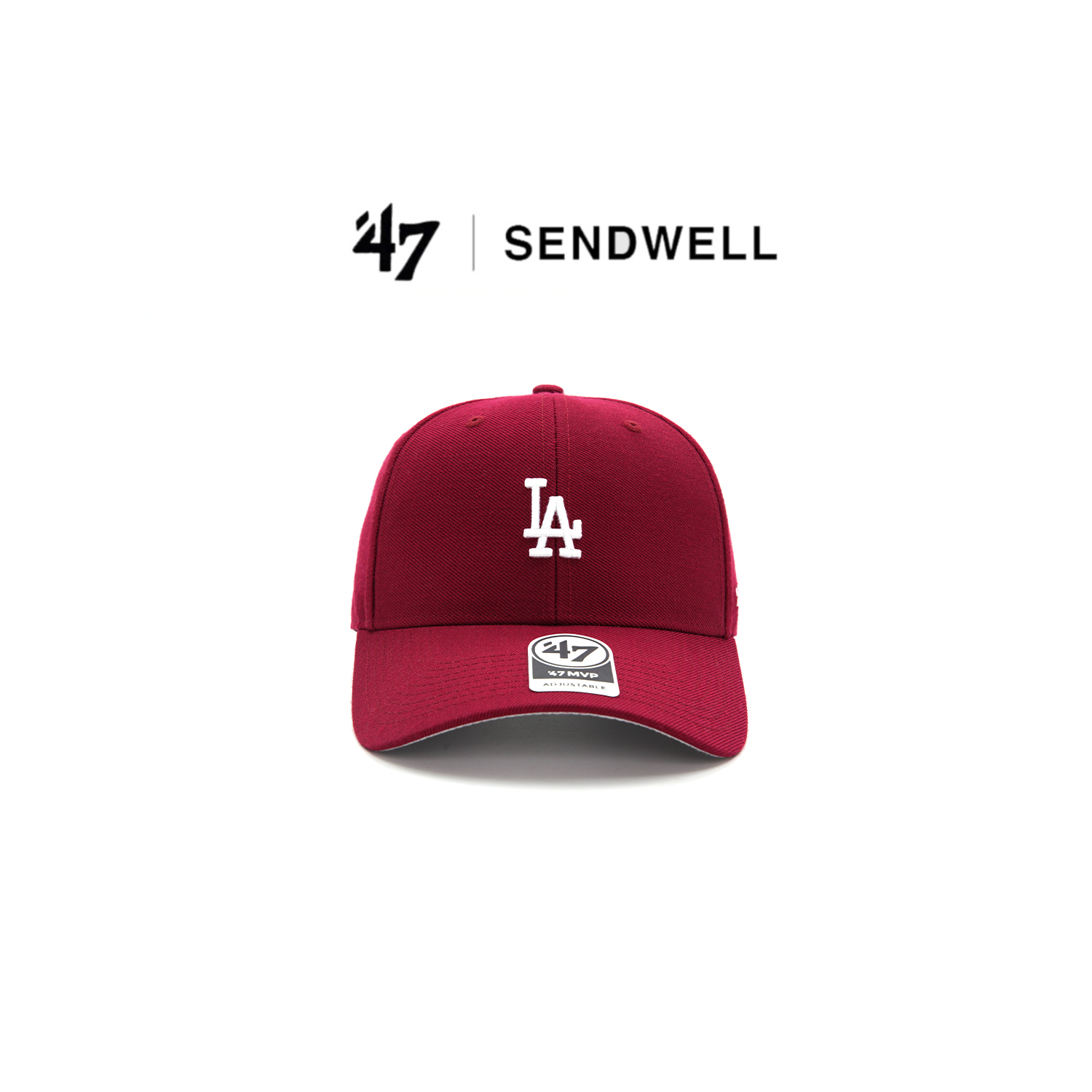 47brand小标硬顶LA酒红色棒球帽复古美式男女NY显脸小情侣鸭舌帽
