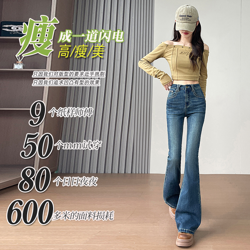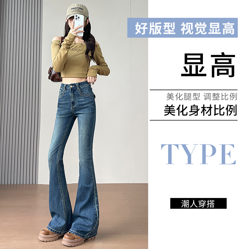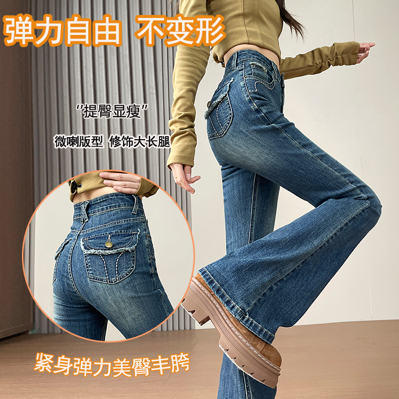 美式紧身丰胯微喇牛仔裤喇叭裤子