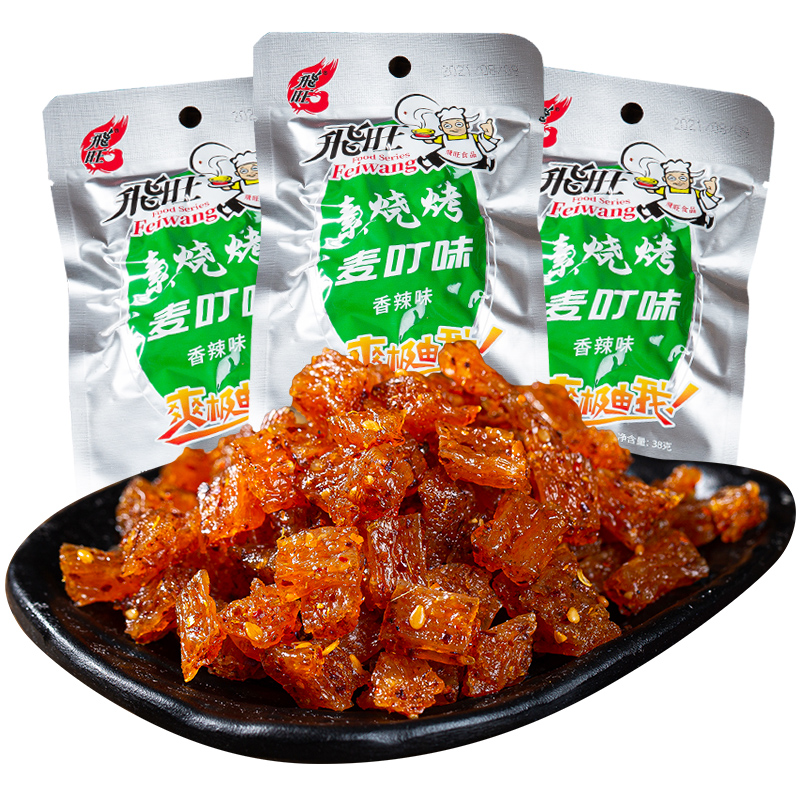 湖南特产飞旺辣条素烧烤蹄筋麦叮味面筋麻辣零食儿时