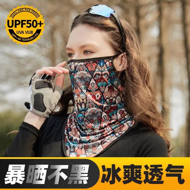 防晒面罩女夏季冰丝遮阳面纱防紫外线围脖男士全脸防护薄款夏天潮
