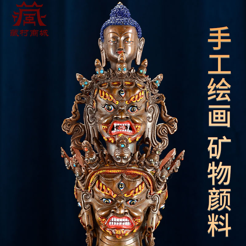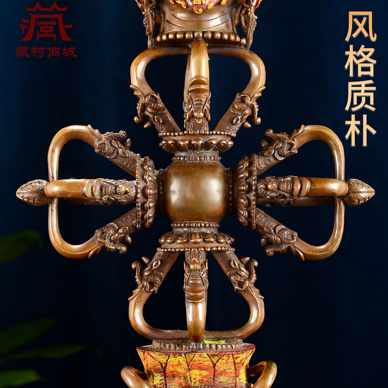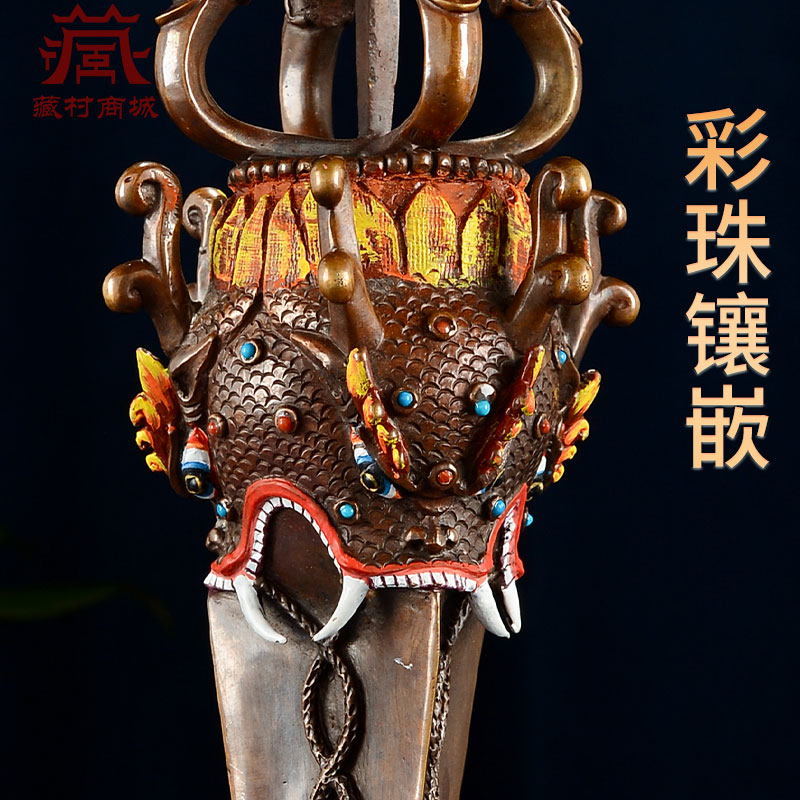 尼泊尔手工十字三面普巴金刚杵彩绘面部彩珠镶嵌金刚橛摆件