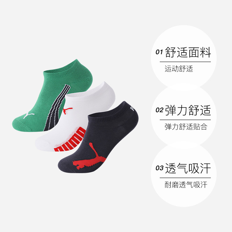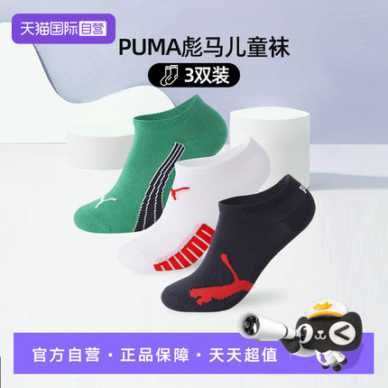 【自营】PUMA彪马儿童袜子男女舒适透气耐磨时尚潮流短袜3双装