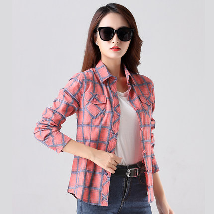 2025格子衬衫女长袖春秋款外穿小清新修身百搭纯棉衬衣外套防晒衫