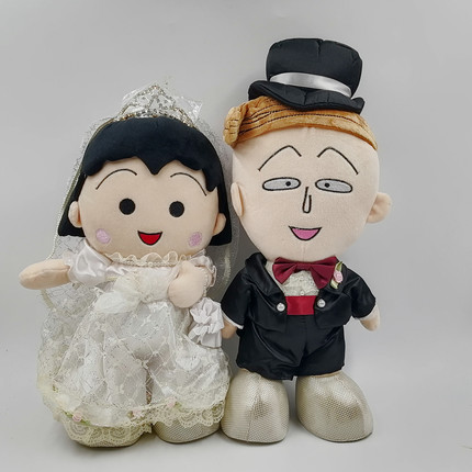 日本原版~樱桃小丸子 花轮同学 毛绒布娃娃玩偶 婚纱装 西式中式