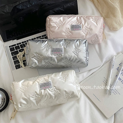 韩国ins风pu蝴蝶结笔袋2025新款女文具袋大容量收纳包学生铅笔盒