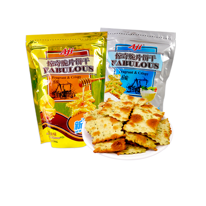 aji惊奇脆片200g蔬菜芝士泡菜味薄脆苏打饼干休闲食品零食 临期