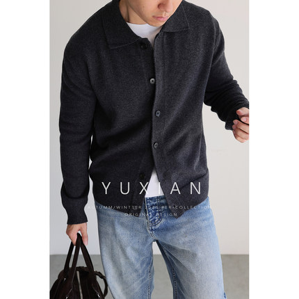 【澳洲美利奴羊毛】老钱重磅蓬松100%羊毛翻领开衫针织长袖毛衣暖