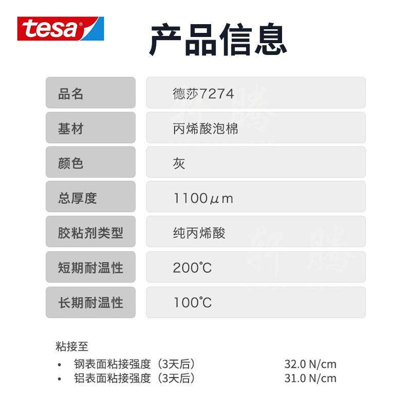 德莎tesa7274 丙烯酸泡棉双面胶带acx耐温高粘办公玻璃隔断粘接