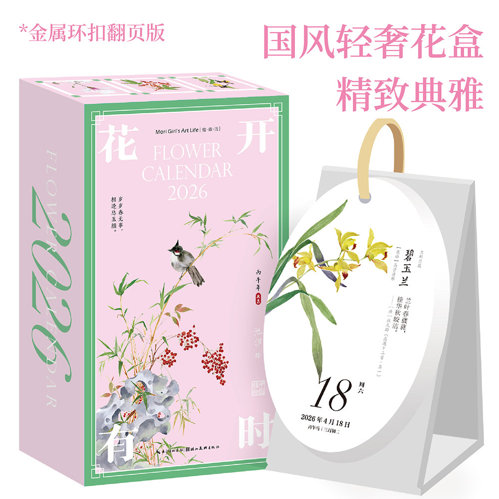 【赠香氛片+贺卡】2026花开有时日历特别版日历翻页马年台历桌面摆件创意国风水彩花卉植物插画节气古诗词图书绘森活新年礼物