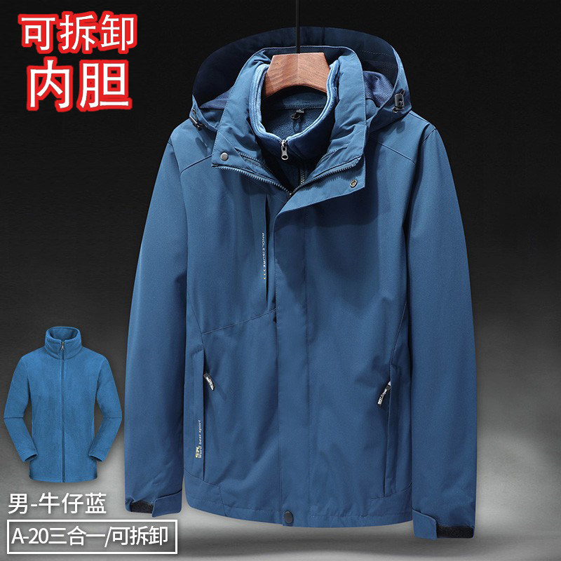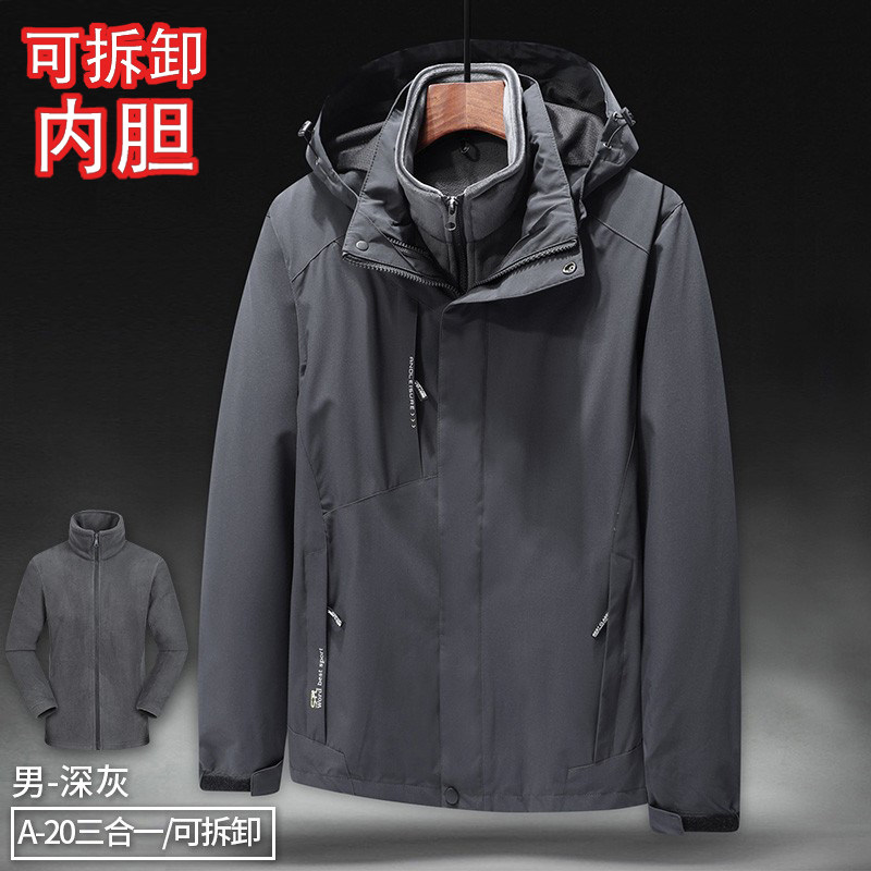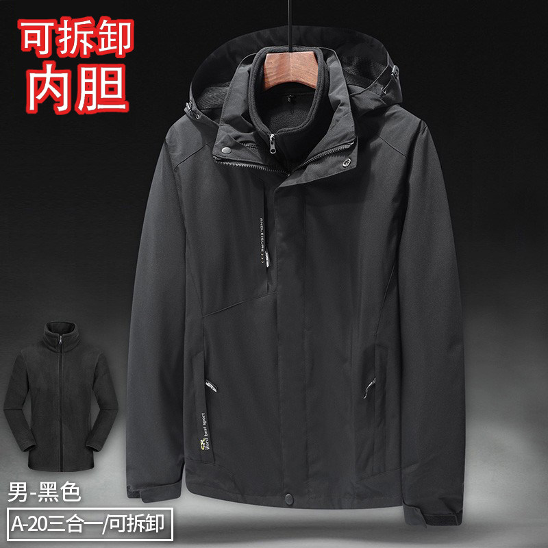 啄木鸟冲锋衣男三合一可拆卸外套户外加厚防风工作服春秋冬两件套