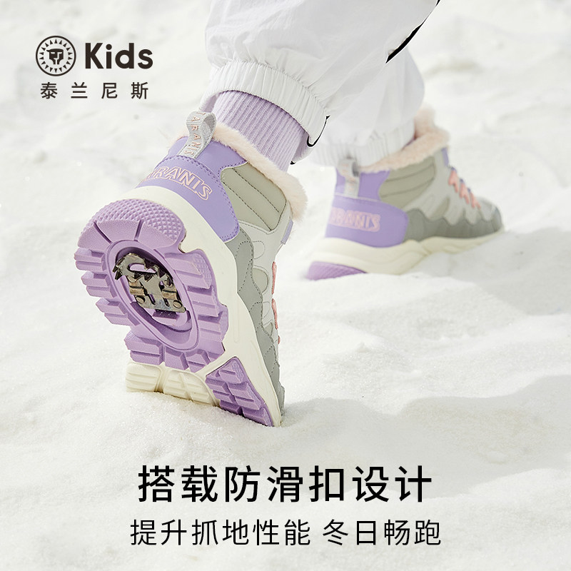 泰兰尼斯童鞋冬季新款中大童加绒保暖大棉运动鞋女童防滑棉靴